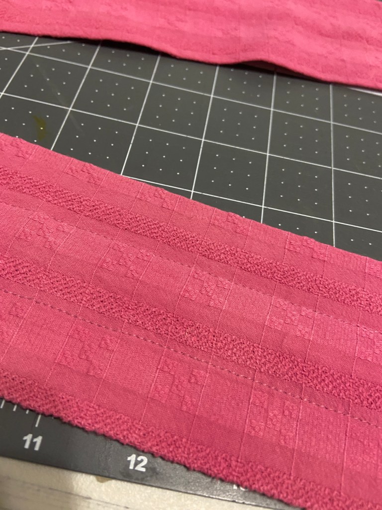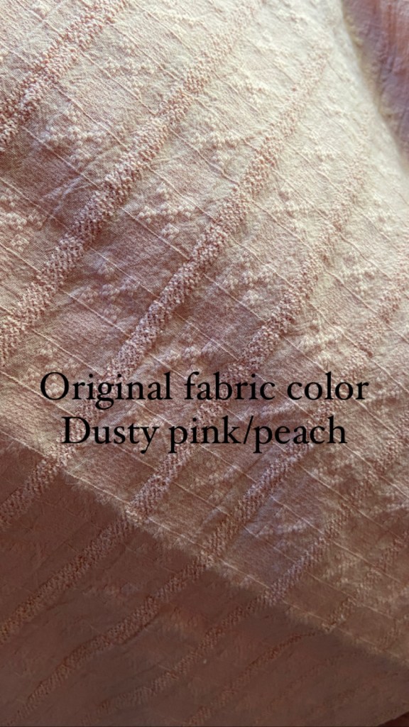 This pink version is made from a 100% textured cotton from Alyssa May Designs. This was originally a very pretty peachy/pink- but it didn’t look the best with my skin tone. I dyed it with Rit liquid dye in the washing machine. I used equal parts Petal Pink and Fuchsia to achieve this color.