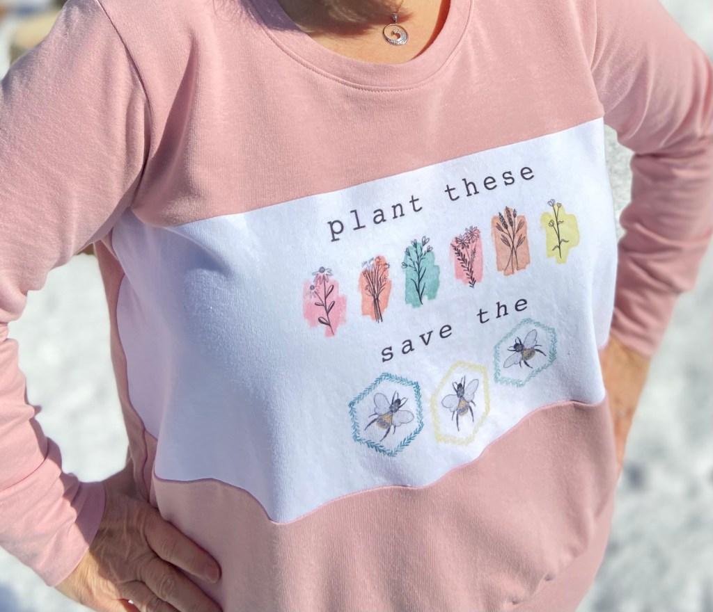 The three versions below are also make with French Terry from Raspberry Creek Fabrics. Sometimes I like to add some type of embellishment, like the small linen pocket or appliqués made with my Cricut.