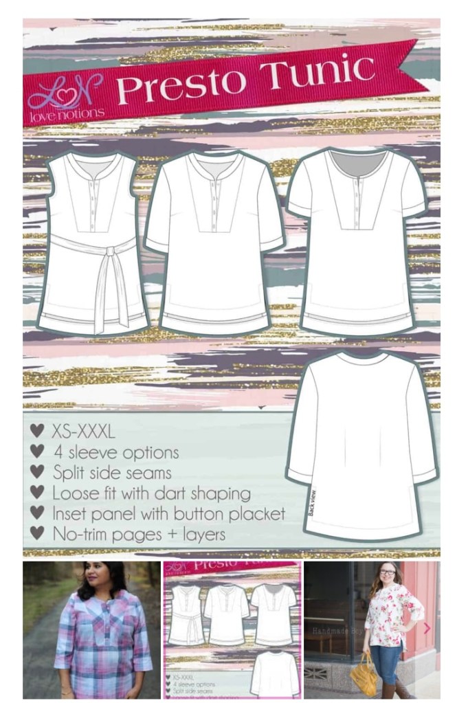 A great way to see how the Presto looks in different fabrics is to do your research. Every time I am making a new to me pattern, I scour the internet to see as many sewn versions as I can find. Using the Love Notions Pattern Support group, simply type Presto Tunic in the Search function. You will see ALL the tunics that were posted by the group members! If you use Instagram- which I love for researching patterns, simply search #prestotunic.