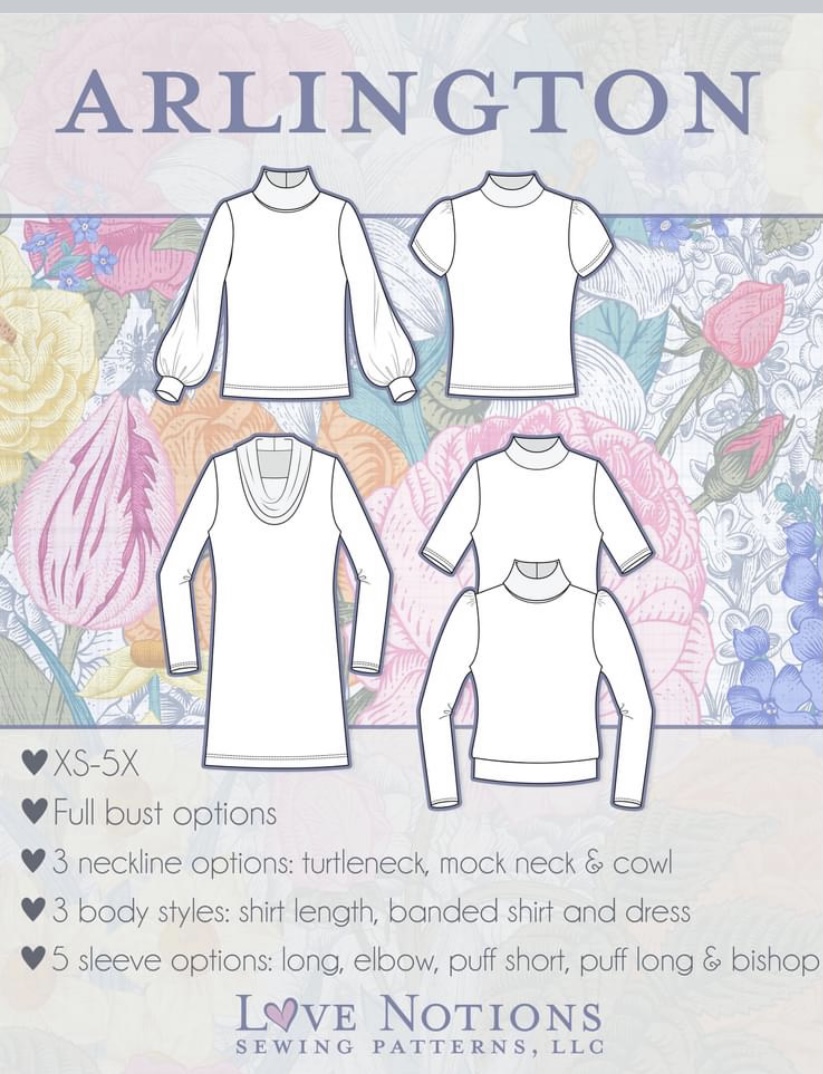 - Options, Options, Options!!!! Two shirt lengths, a dress, 3 necklines, 5 sleeve options ~the combinations are endless with this pattern!
