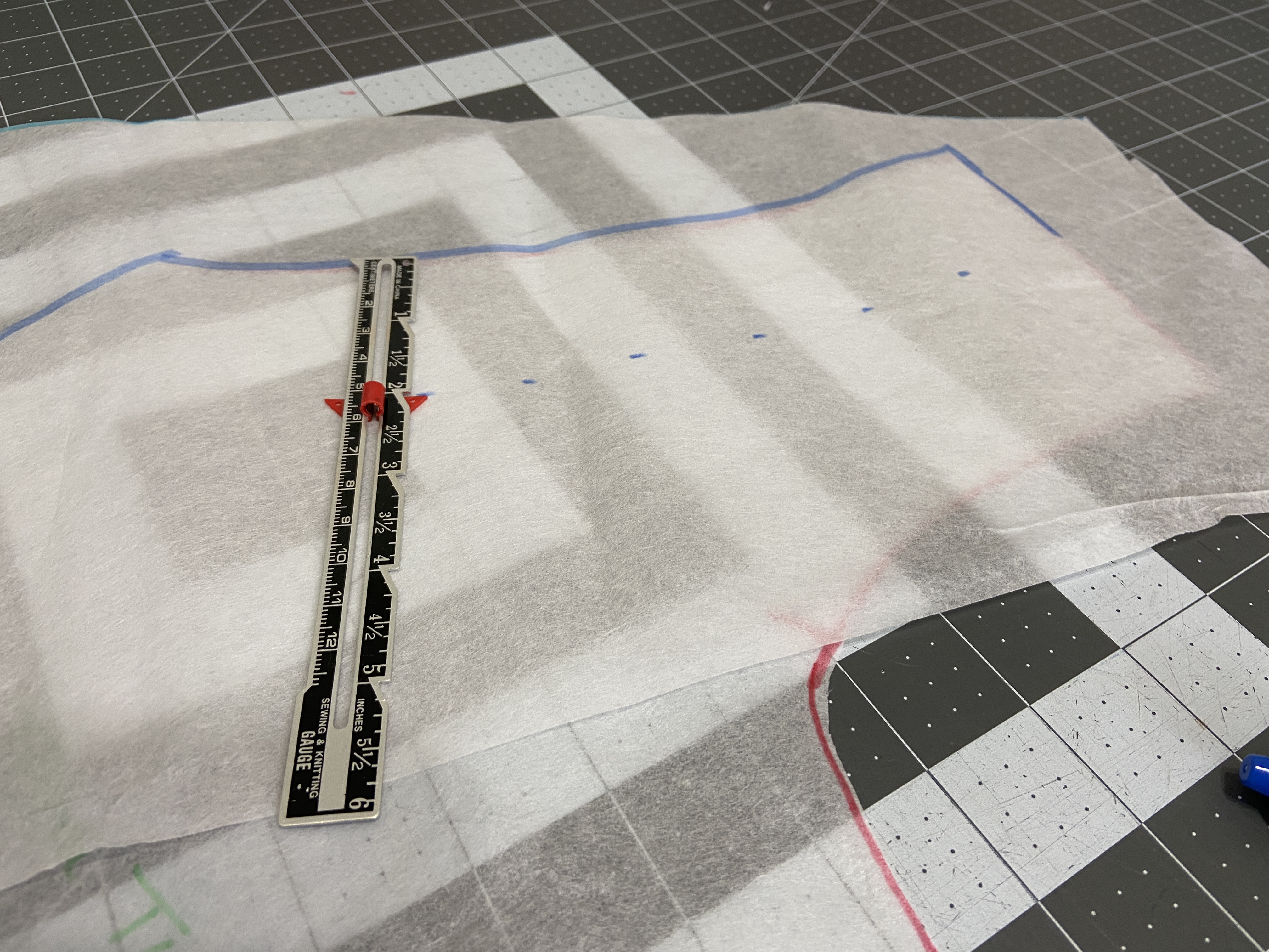 - Measure 2″ away and mark. Use a French curve to connect the markings. This is your front facing.