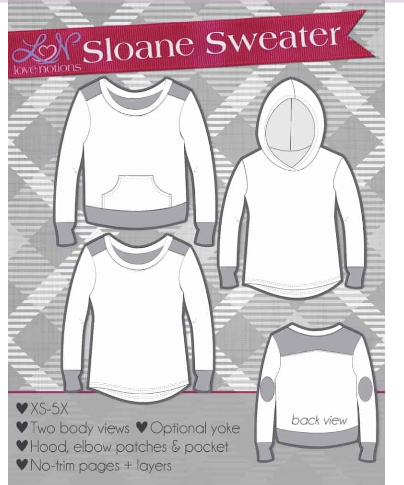 - Options: The pattern has so many options to choose from. Hood, pockets, yoke, elbow patches and 2 body styles are all included!