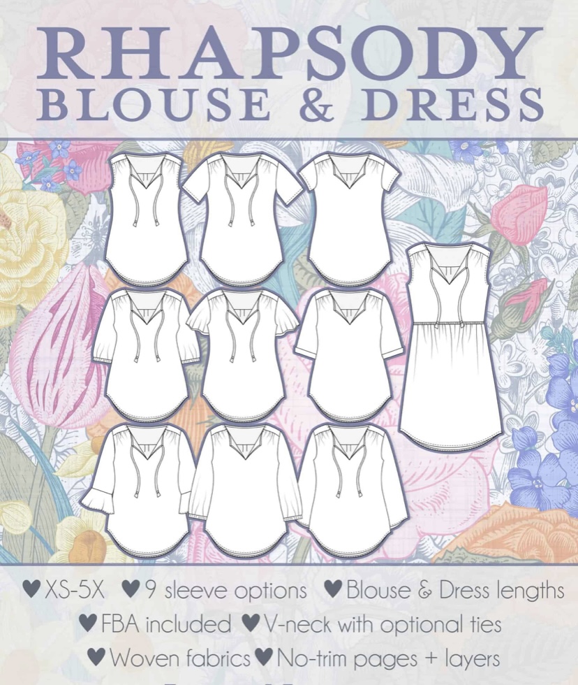 I’ve only made one Rhapsody so far. It’s a cute flutter sleeve version that I color blocked ( due to only having one yard of the dot fabric to work with). I do have a few planned this spring.