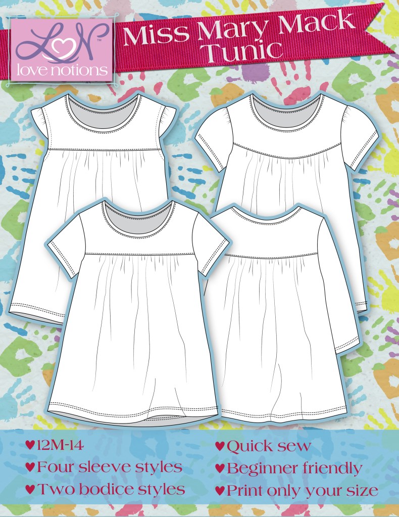 The Miss Mary Mack is just $5 today as one of the Love Notions Feature Friday patterns. Keep reading to learn about 2 others that are $5 today too!! (SALE IS NOW OVER) Even if you don’t have any little ones to sew for, this is a great pattern to have on hand. You never know when you might need it. Read my tips below for another idea for this timeless tunic!