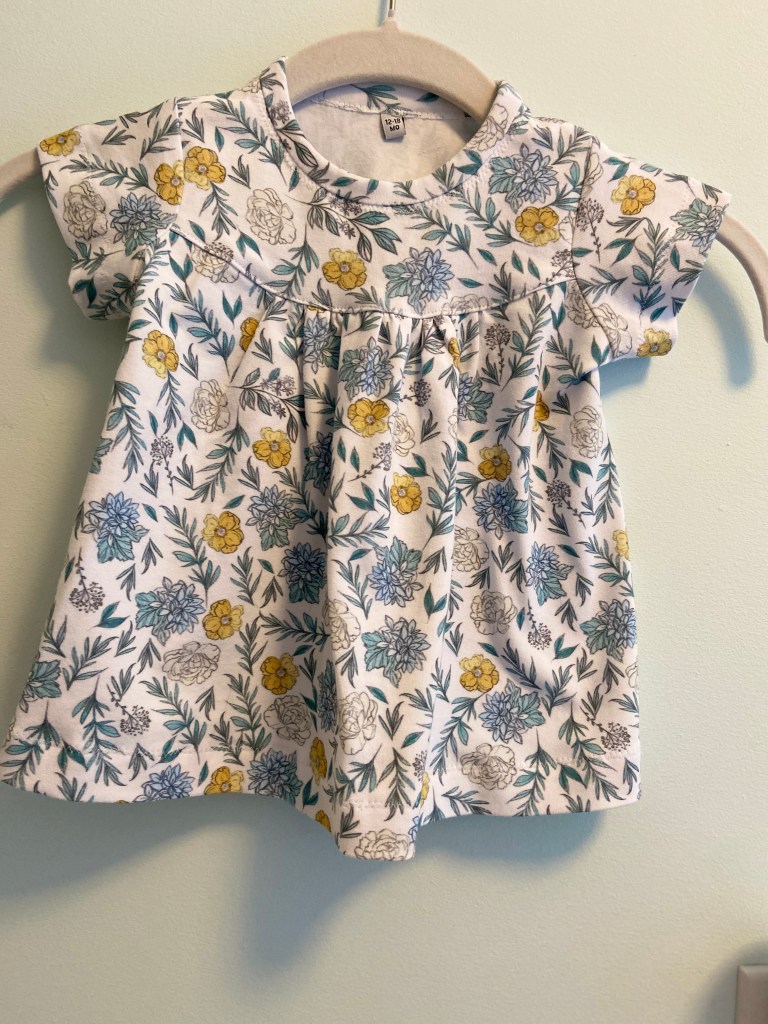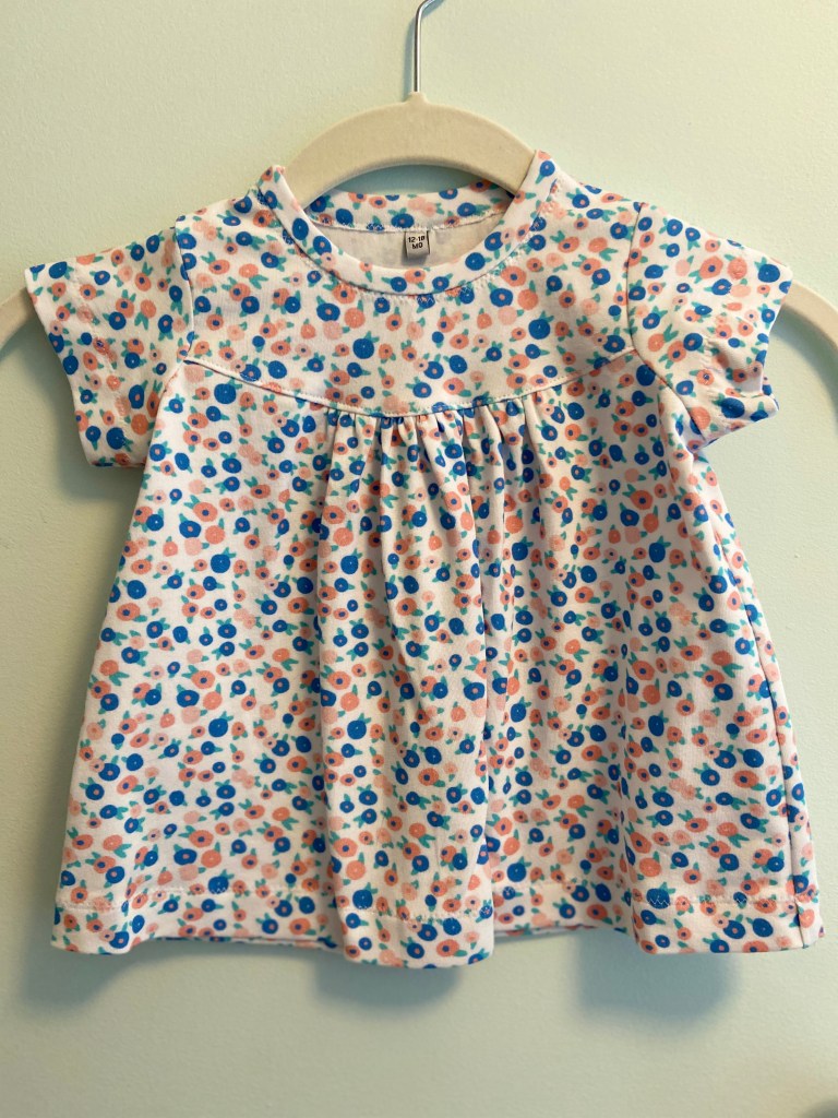 I love that the 12 and 18 month sizes only use one-half yard of fabric! This pattern is a great way to use up small pieces of fabric you have laying around. It can be color-blocked, therefore allowing you to use up some of the tiniest scraps! It really is the ultimate scrap buster!!