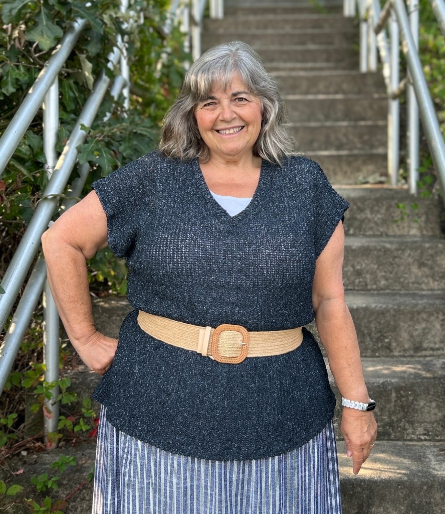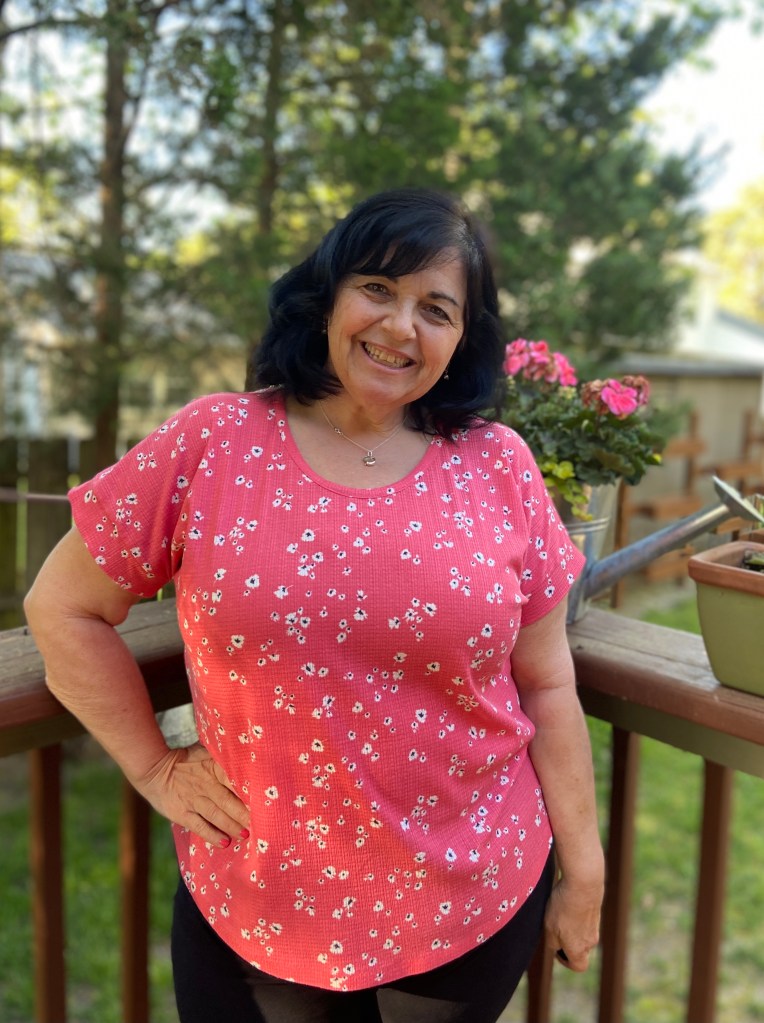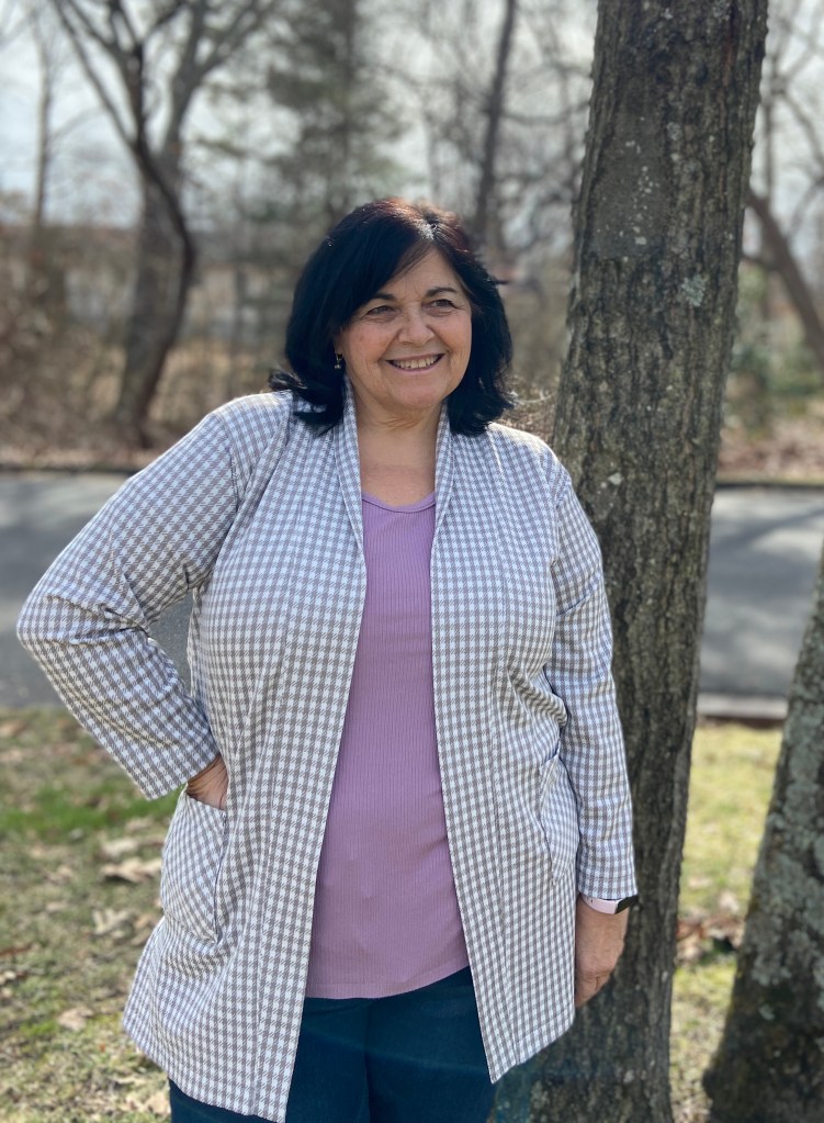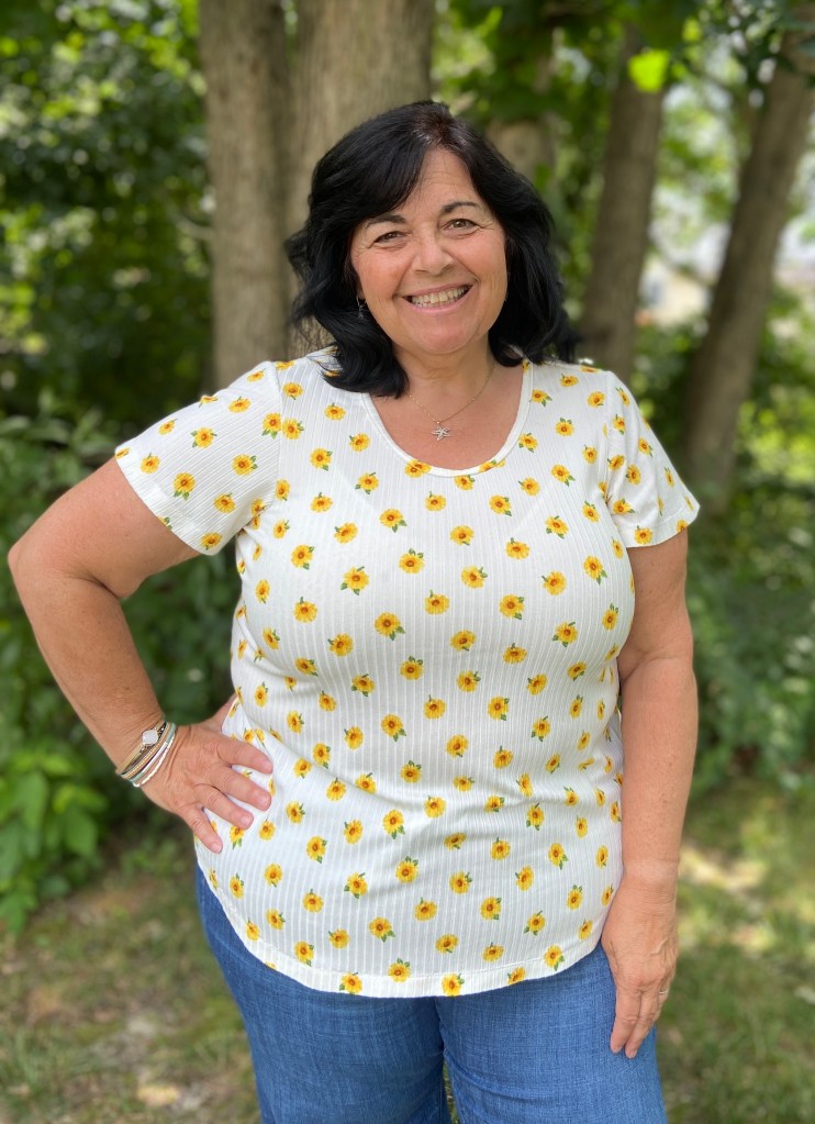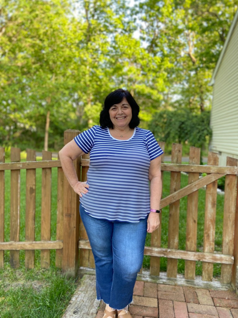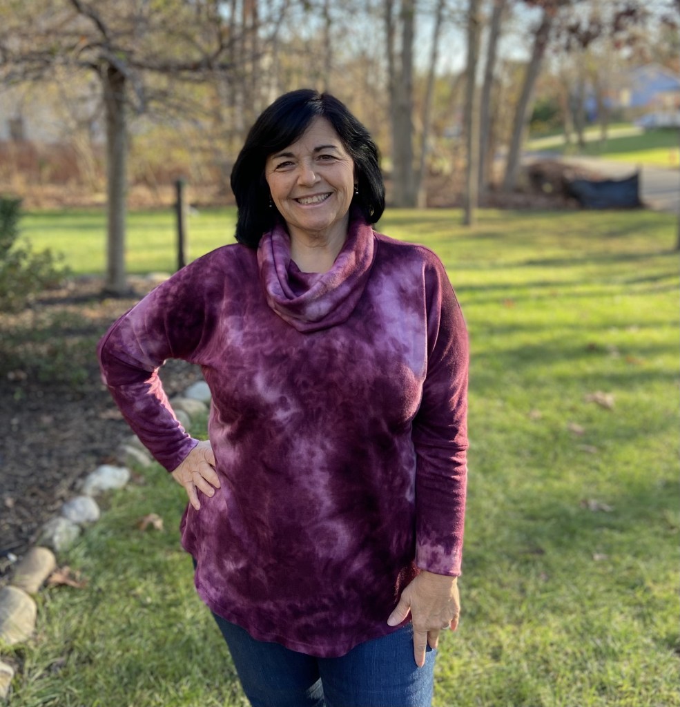 Since I am only 5 feet tall, I did shorten the top by 1″. I do prefer to wear my tops a tad longer, so the 1″ was the perfect amount for me. If making the shirt tail hem, it’s important to determine your finished length before cutting out your fabric so that you can maintain the nice hem shaping.
