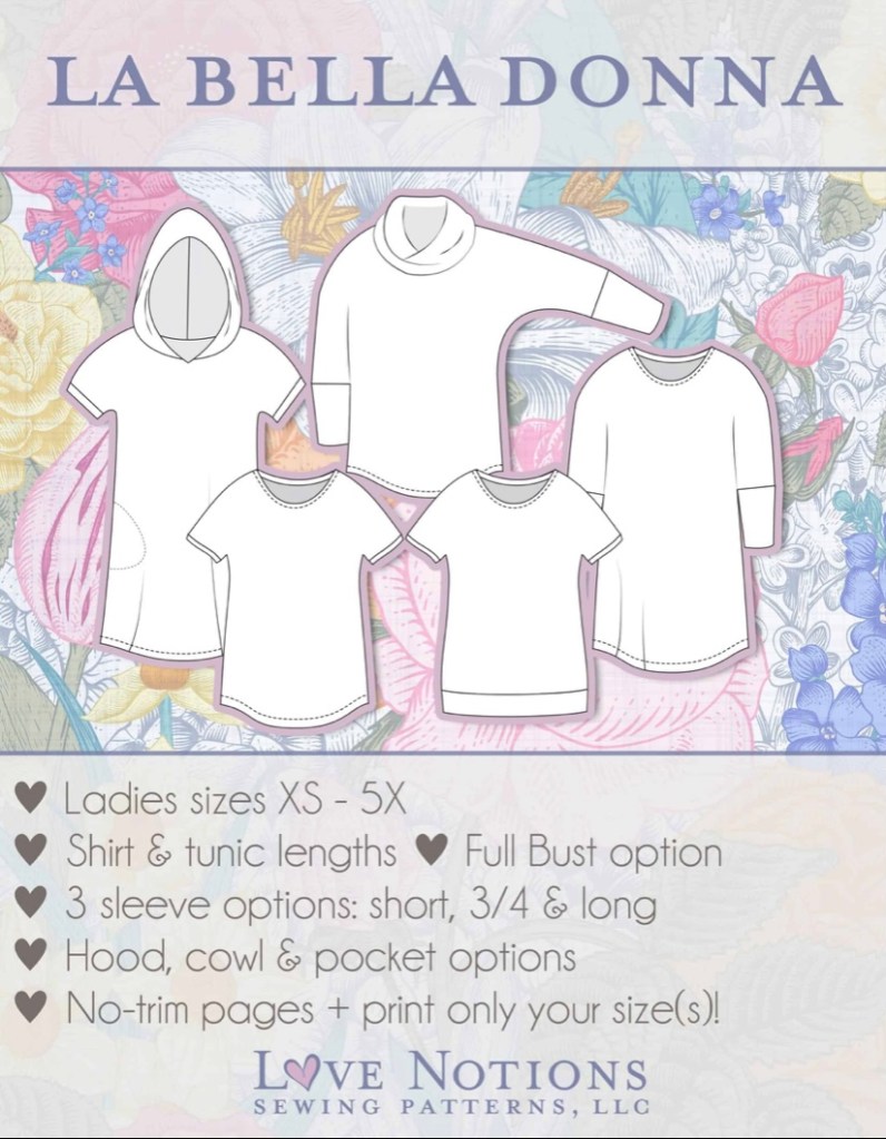 There are some patterns that are so good, you just sew them over and over. Imagine a top that makes you look great on your good days AND bad days. A top that is forgiving when you gain a few pounds here and there. A top that always makes you feel good about yourself. Sound too good to be true? Nope~ the Love Notions La Bella Donna or the LBD as we like to call it truly lives up to it’s name. “The Beautiful Woman” is exactly who you will be when wearing this top or tunic.