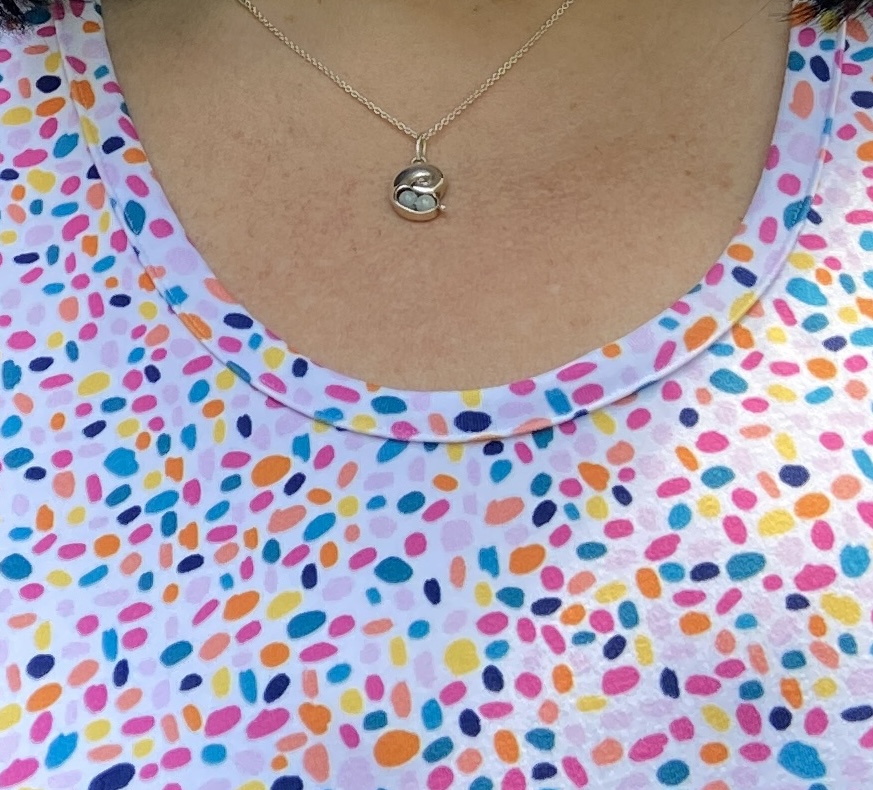One of the things I love the most about the LBD is the neckline. It’s not too high , it’s not too low ~it’s perfect for me! Because I love it so much I’ve traced it onto other Love Notions patterns. My favorite pattern to use it on is the Classic Tee.