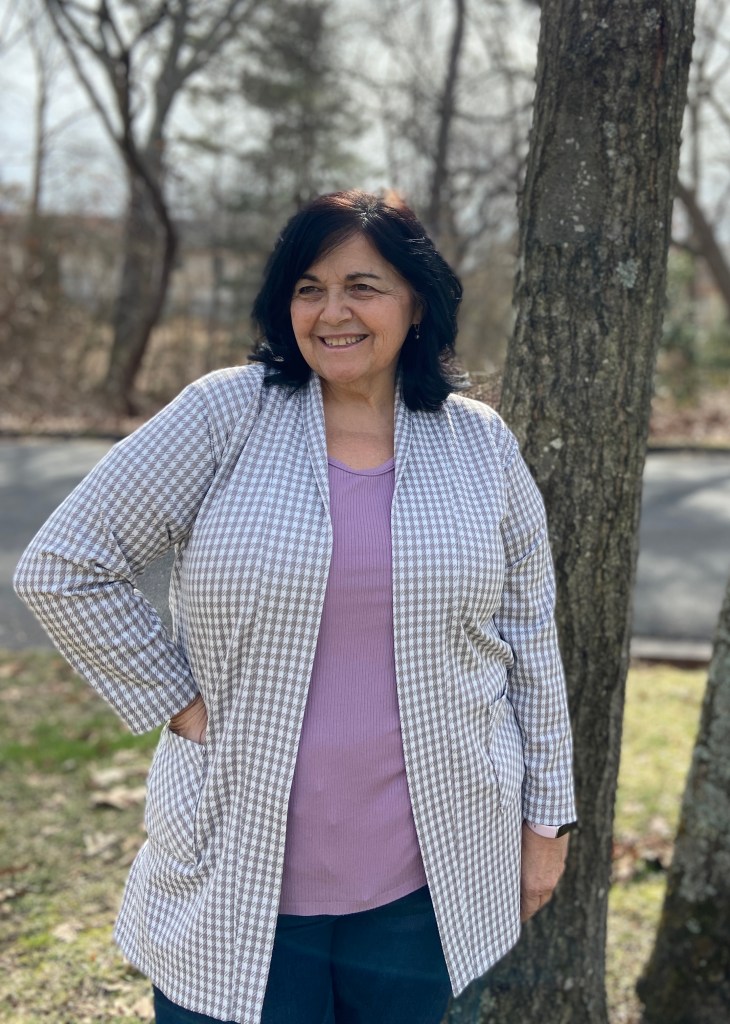 The Boyfriend Cardigan is available in sizes XS-5X. A full bust front is available if needed. Be sure to choose your size according to your high bust measurement. This is extremely important to get a good fit at the shoulder. If in-between sizes, size down.