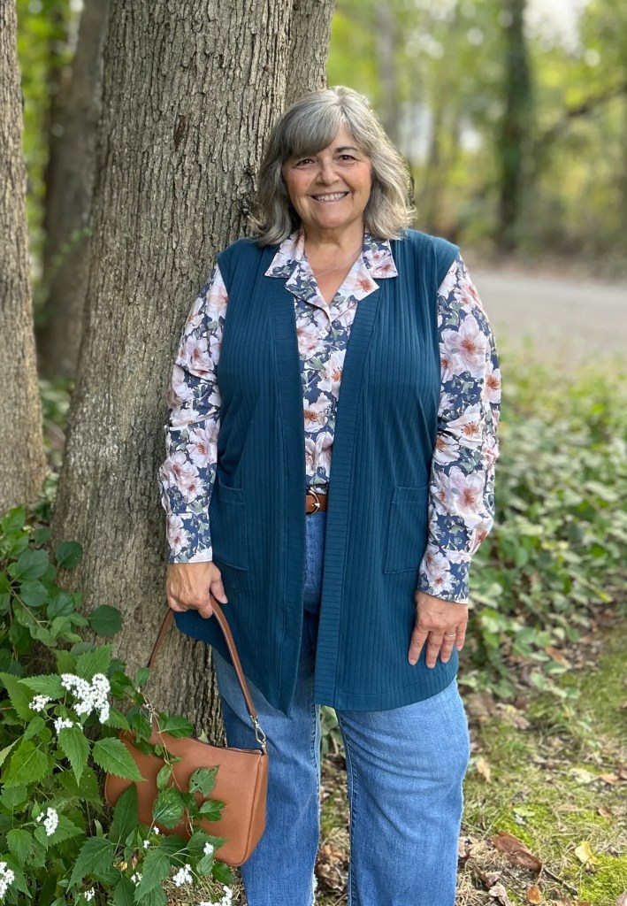 The Boyfriend Cardigan is an open front style. It is NOT supposed to close in the front. It has a slightly relaxed fit with a drop shoulder and slouchy pockets. The pattern is drafted with gentle shaping at the waist at the sides and center back~ thus avoiding that boxy look. The shorter version hits about mid thigh. I haven’t made the duster version~ mainly because I think I’m too short(and round) to wear a duster.
