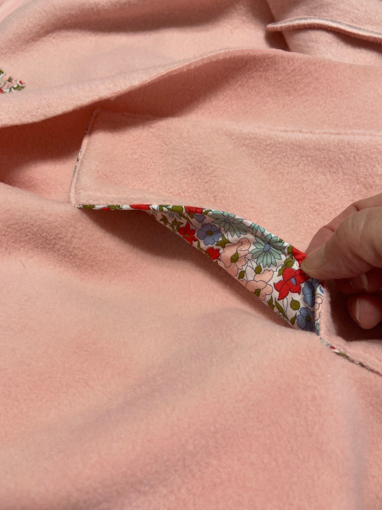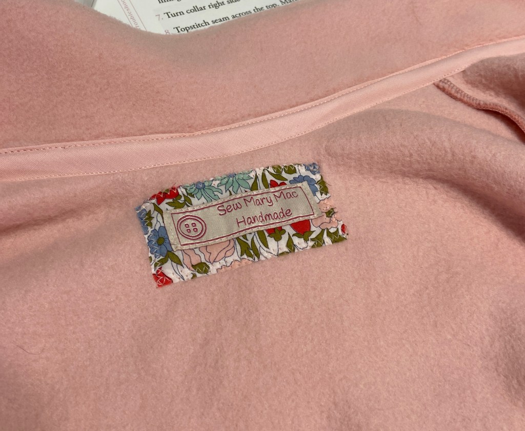 For my pink fleece version, I used a scrap of Liberty of London floral that I’ve had in my scrap basket. I also love to use my beloved scraps for making tags for my handmades. The cream sweater knit pocket lining is a lightweight rayon/linen blend from my scrap basket as well.