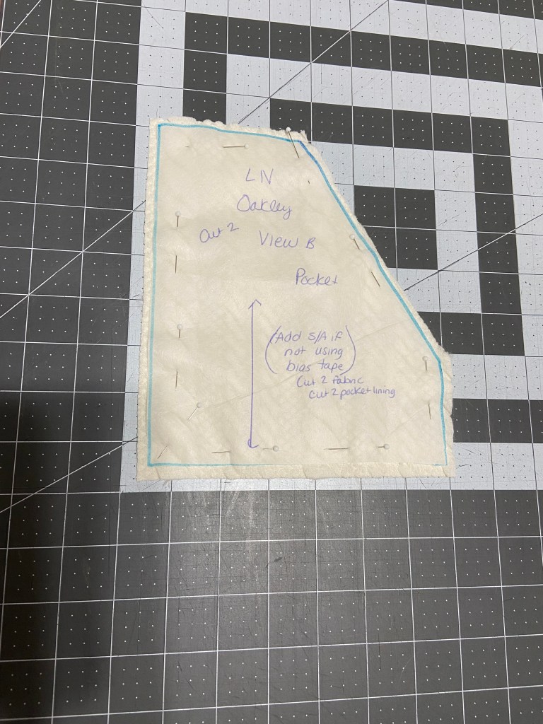 For both versions of my Oakley Vest, I chose not to use bias binding around the pockets. This was just a personal preference. I created fully lined pockets. To do this you must: