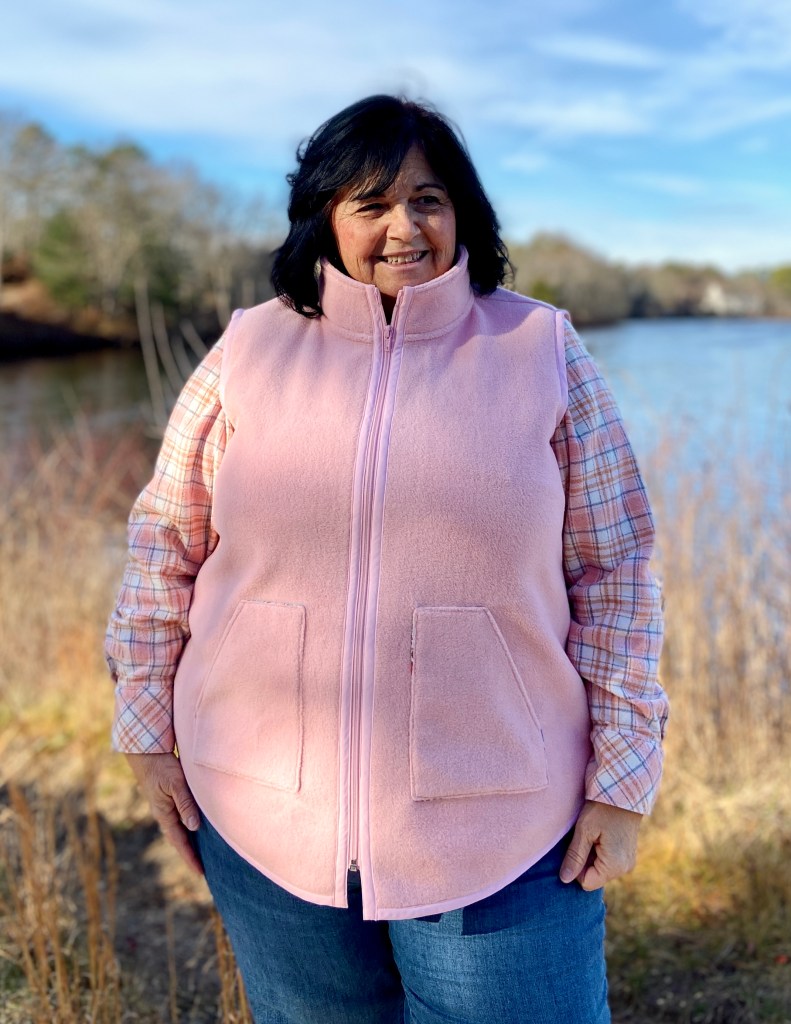 The Oakley Vest for women is available in sizes XS – 5X. A full bust front is available if needed. Be sure to choose your size according to your high bust measurement. This is extremely important to get a good fit at the shoulder and neckline. If in-between sizes, size down. Remember that all views have been drafted to be worn over layers. If you would like a closer fit you might want to size down.