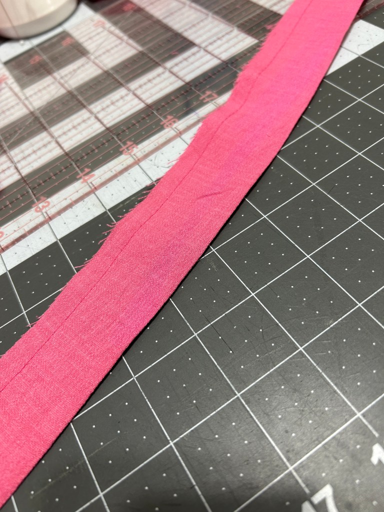 - Fold each ruffle strip in half, wrong sides together. Press.