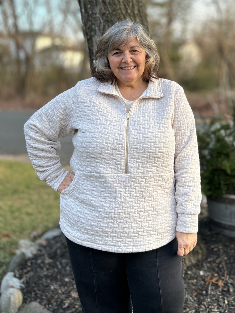 - Half-zip front makes it so easy to put on and take off(much easier than a hoodie!)