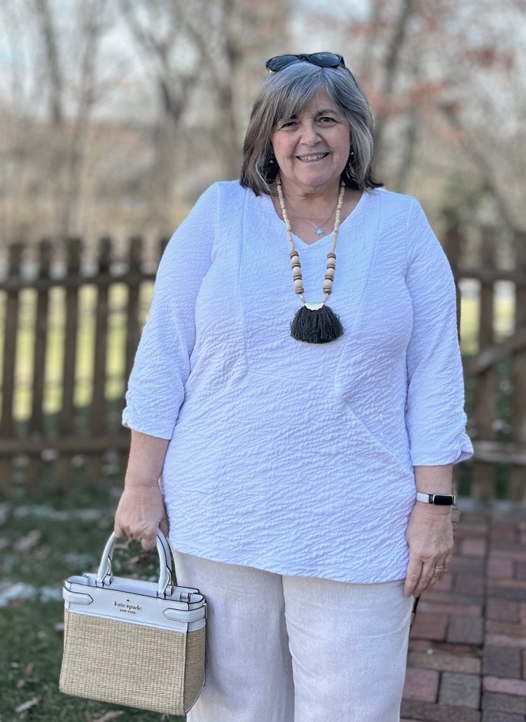 If you follow my sewing journey here at Sew Mary Mac or on Facebook or Instagram, then you know that my style is very “Coastal grandma/preppy”. So, of course I had to make my Aurora Tunic fit my life style!