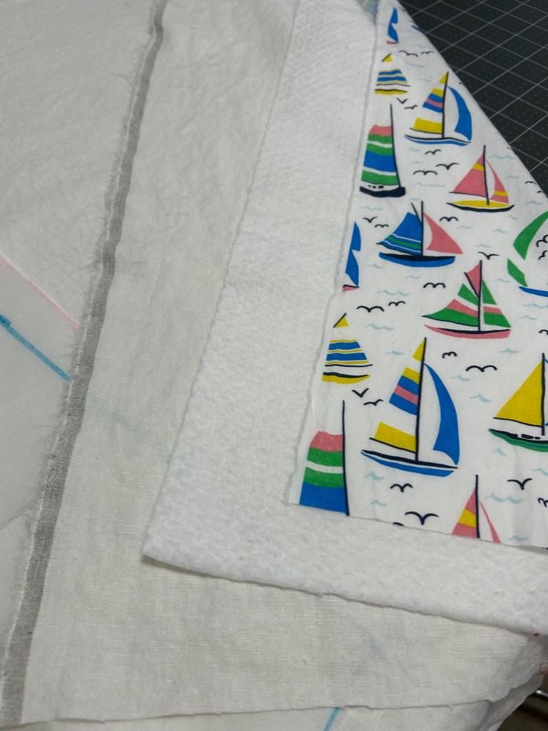 I wanted my collar to lay open flat and not be too bulky. To achieve this I quilted the fabric as follows: