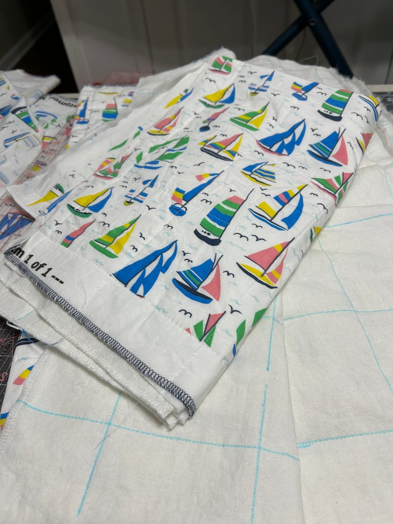 - After cutting, stitch around all sides of each quilted piece to hold everything in place.