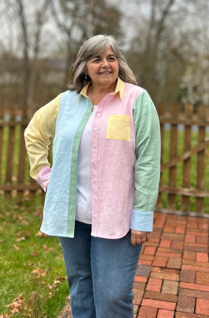 I’ve had this on my “to-sew” list for a couple of years now. I admit~ I simply LOVE colorblocking! What a perfect combination~ the Aria color blocked in 100% linen! I put it on for photos just earlier and I already know it will be one of my most worn Arias this Spring and Summer.