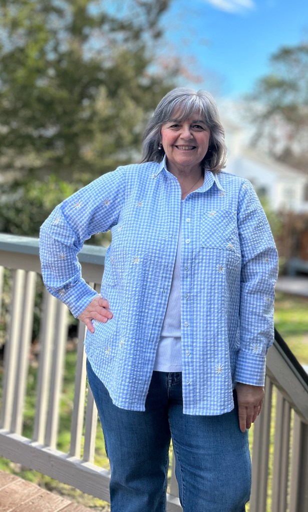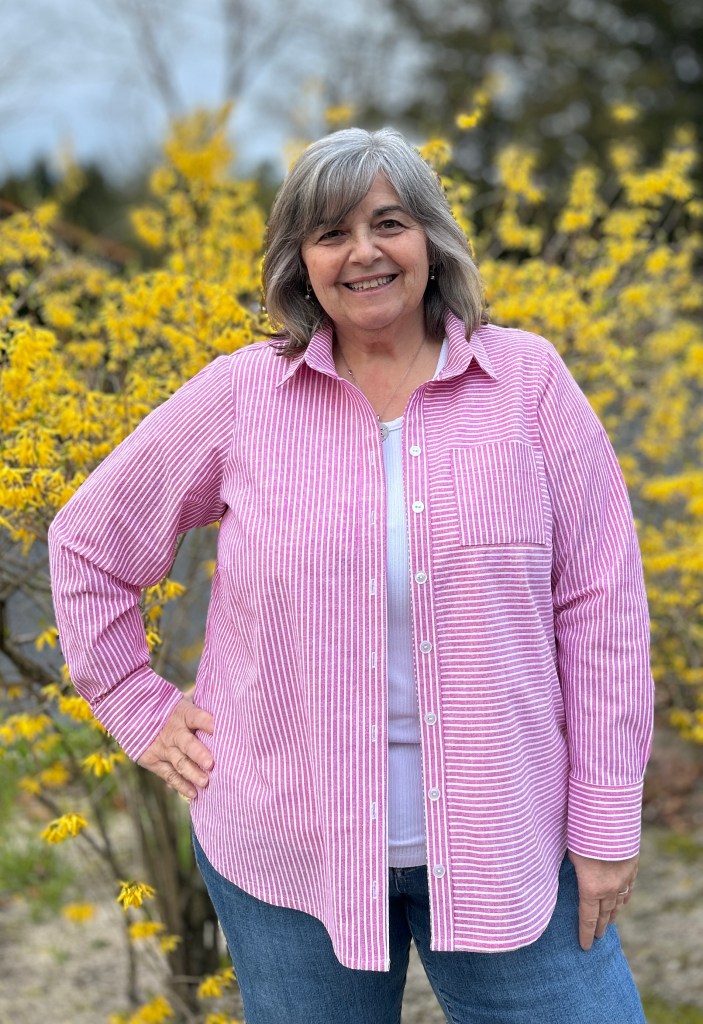A classic button down is always a staple in any coastal preppy wardrobe. Worn open over a tee is such a classic coastal thing to do! It can also be worn under a cardigan or blazer. In the NorthEast by the coast, our mornings and evenings are often cool. Long sleeve shirts are really worn year round! I wear mine all Spring and Summer! When the weather gets hot I simply roll up my sleevesI My linen and seersucker Arias are some of my most worn! Want to read more about my “Coastal Preppy Wardrobe” and which Love Notions patterns I use to create it? Check out this blog post!