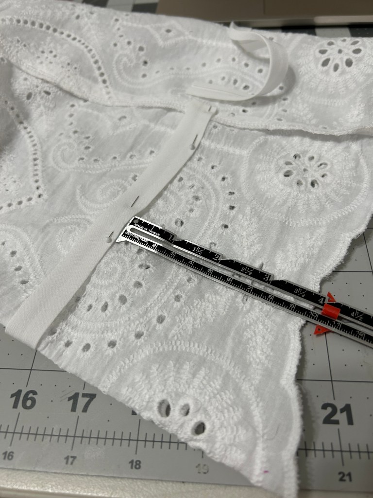 I found this super soft bordered eyelet fabric in the NYC garment district. It was so much softer than typical cotton eyelet fabric~ it had to come home with me. If you are ever in the NYC be sure to check out the shop we call “The Janky Store”. It always has a sign saying they are having a “Going out of business sale”, but clearly they aren’t. Its A Material World is located at 257 W 39th Street. (Right next door is another of my favorites~ AK Fabrics). Both of these shops are hit or miss~ but you never know what you may find.