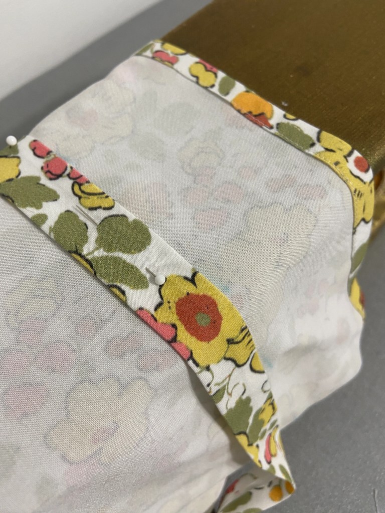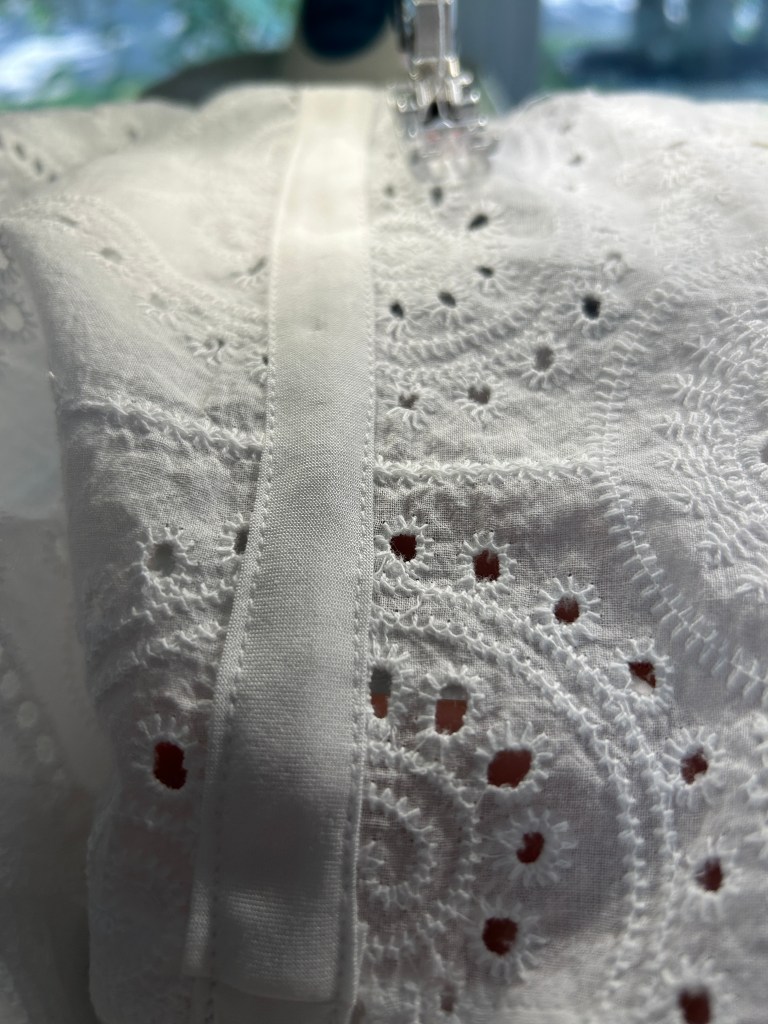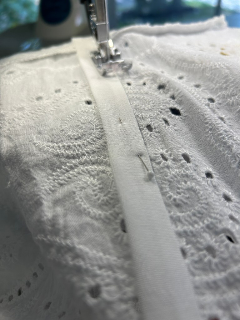 - For this Eyelet fabric I made my bias tape from the rayon challis I used for the underlining.