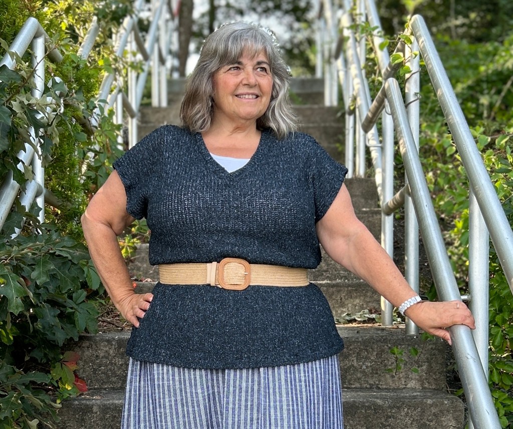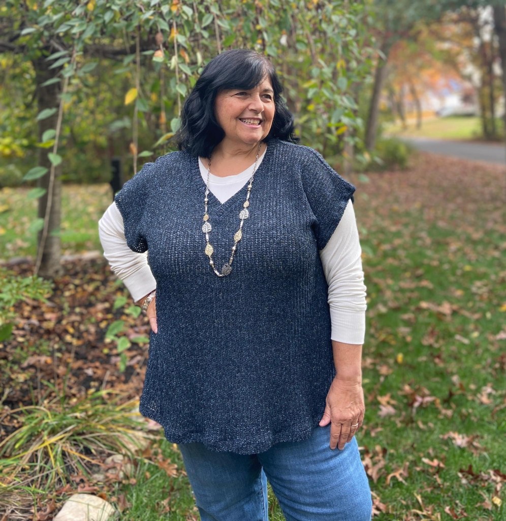 I LOVE the La Bella Donna, or LBD as we like to call it. It’s such a staple in my wardrobe. It’s great for wearing under cardigans and it’s the perfect quick t-shirt. But~ did you know you can also use this pattern to create a “Coastal Grandma” vest for fall?? This LBD vest is a great transitional piece for Fall and it’s so simple to create!