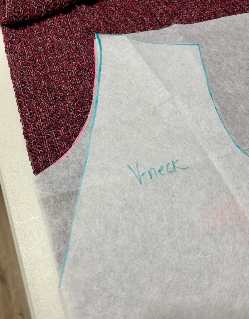 - Trace the V-neck onto the front of the LBD. (there are no changes needed to the back)