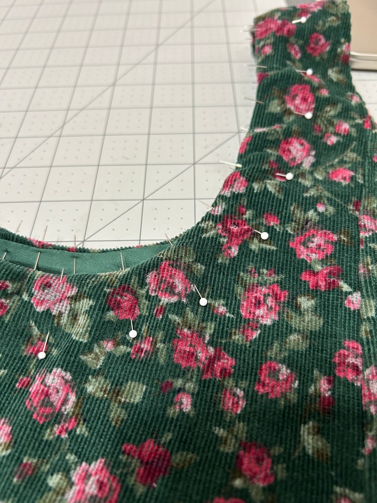 I made my Pianoforte with a piece of vintage cotton corduroy that was in my mom’s stash. It’s been in a tote in my basement for years(decades actually). I’ve been waiting for the perfect pattern to sew this fabric up. I think it was the perfect time to pull out this fabric and sew it up. I know my Mom would have been so happy to see this fabric sewn into this cute jumper!