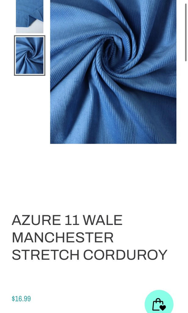 Cali Fabrics~ I have been LOVING Cali Fabrics lately! This is a great shop to get the staples you need. They have a great selection of corduroy, denim and twill. I highly suggest following them on Instagram or joining their Facebook page. Each week, Ron (one of the owners) does a video showing all the new fabrics that week. He does a great job of showing the drape of each fabric.