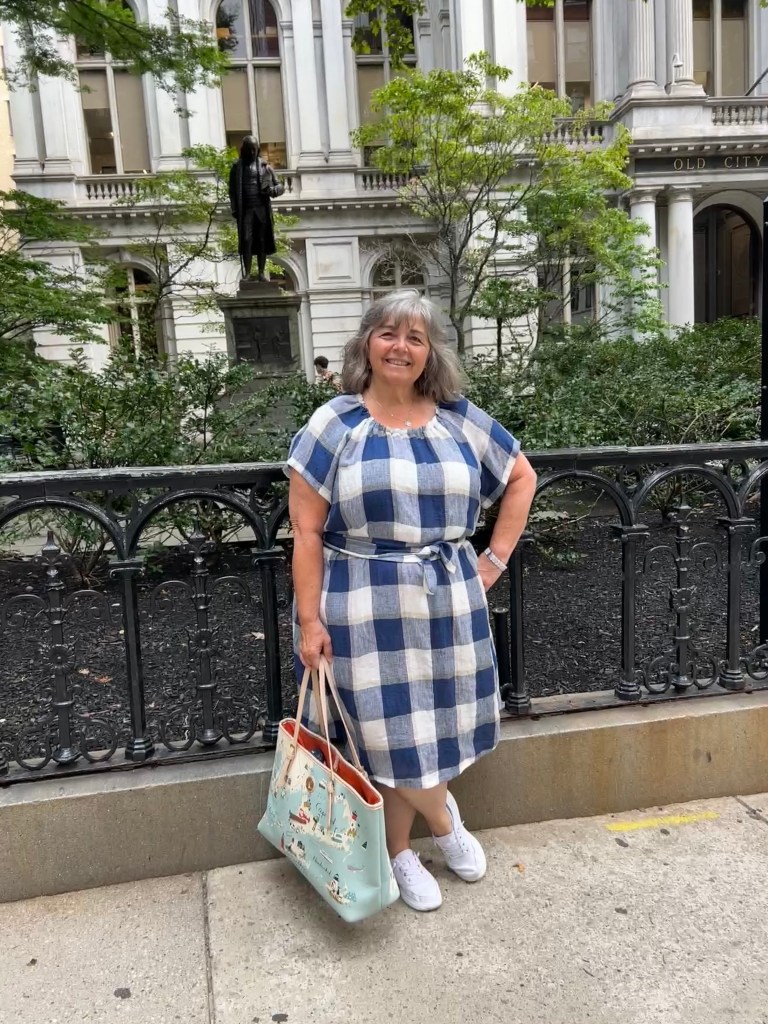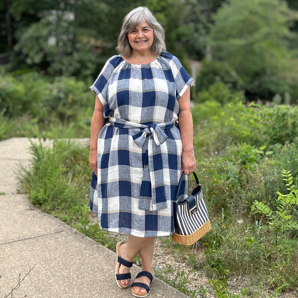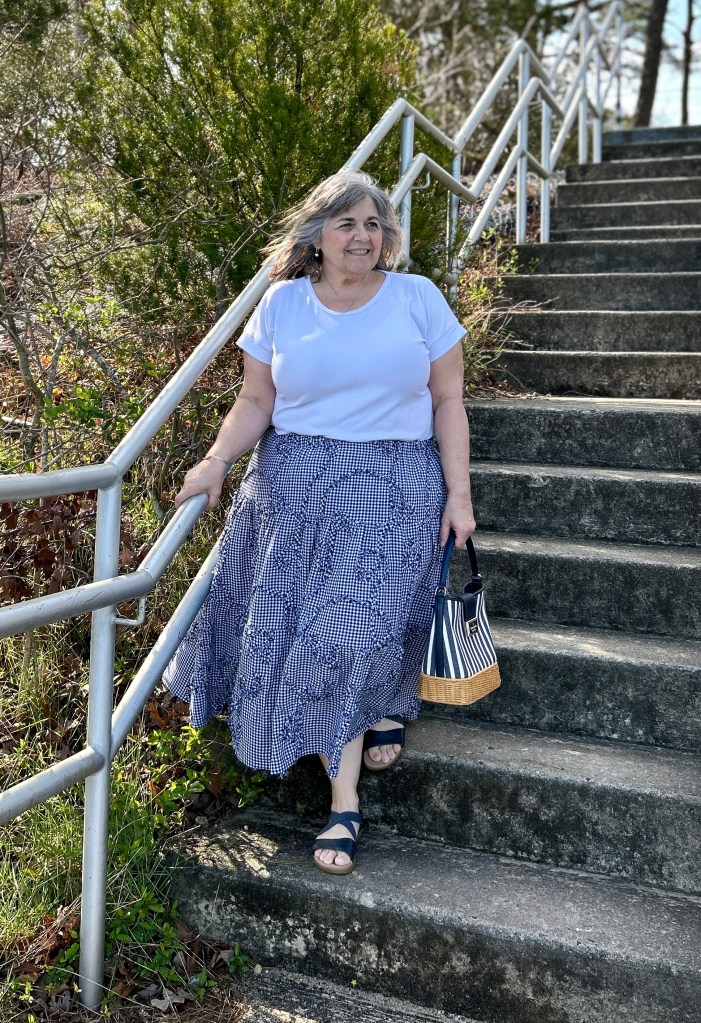 I also loved the Caprice skirt below. I wore this so often all summer, then continued to wear it in the Fall with a sweater and boots. (Oops, no photo of that outfit!) Sometimes you just pick the perfect fabric to use for a pattern~ this is one of those cases. This is a vintage embellished cotton gingham that I’ve had it my stash for 30 YEARS!