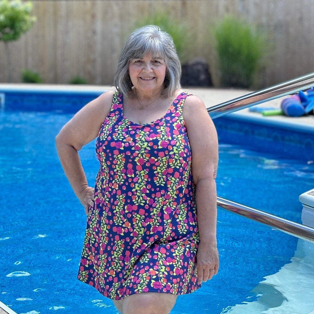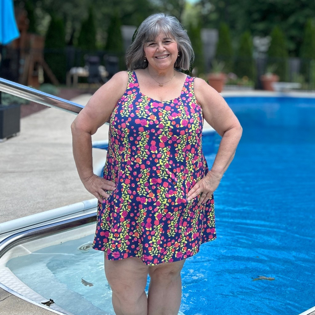 - I love how this swim dress fits me~ and I don’t have to worry about my little great niece and nephew jumping all over me in the pool!