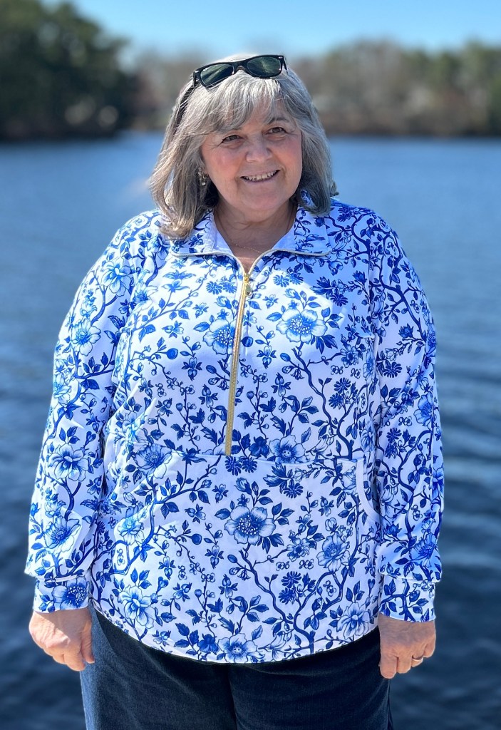 So what did I make this year? I knew exactly what the first thing I would make would be! I LOVE the UPF50+ pullovers sold by Lilly Pulitzer. I love the bright colors and prints, but I don’t love the price tag on them. I’ve made a new one every year, for the past few years and I wear them more than I ever imagined! We live on the North East Coast, so our mornings and evenings are cool. We also spend a lot of time out on the water, so wearing UPF50+ clothing is a must! Therefore I can always use another one!