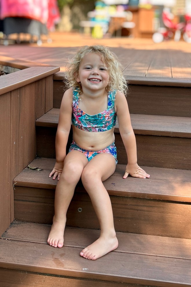 Vivian looks beautiful in the two pices bathing suit. The color is so vibrant! Of course your sun dresses are beautiful as well!