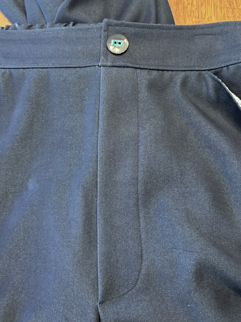 I lined my front pockets with seersucker and added a vintage navy blue and green button to achieve just the vibe I was going for! FYI the front pockets on these pants are awesome!