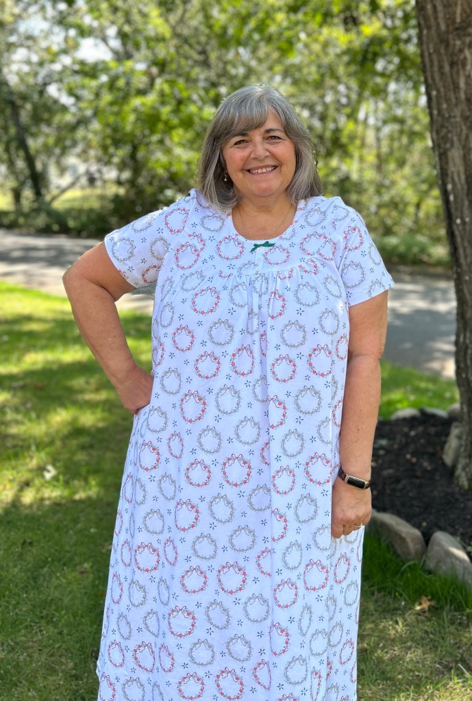 I sewed up three different prints. I made a LN Constellation in French Terry, a True Bias Marlo Sweater in French Terry and a hacked LN Juliet in cotton jersey for a nightgown. And yes, I did stand outside in my front yard in my new nightgown to take pictures.