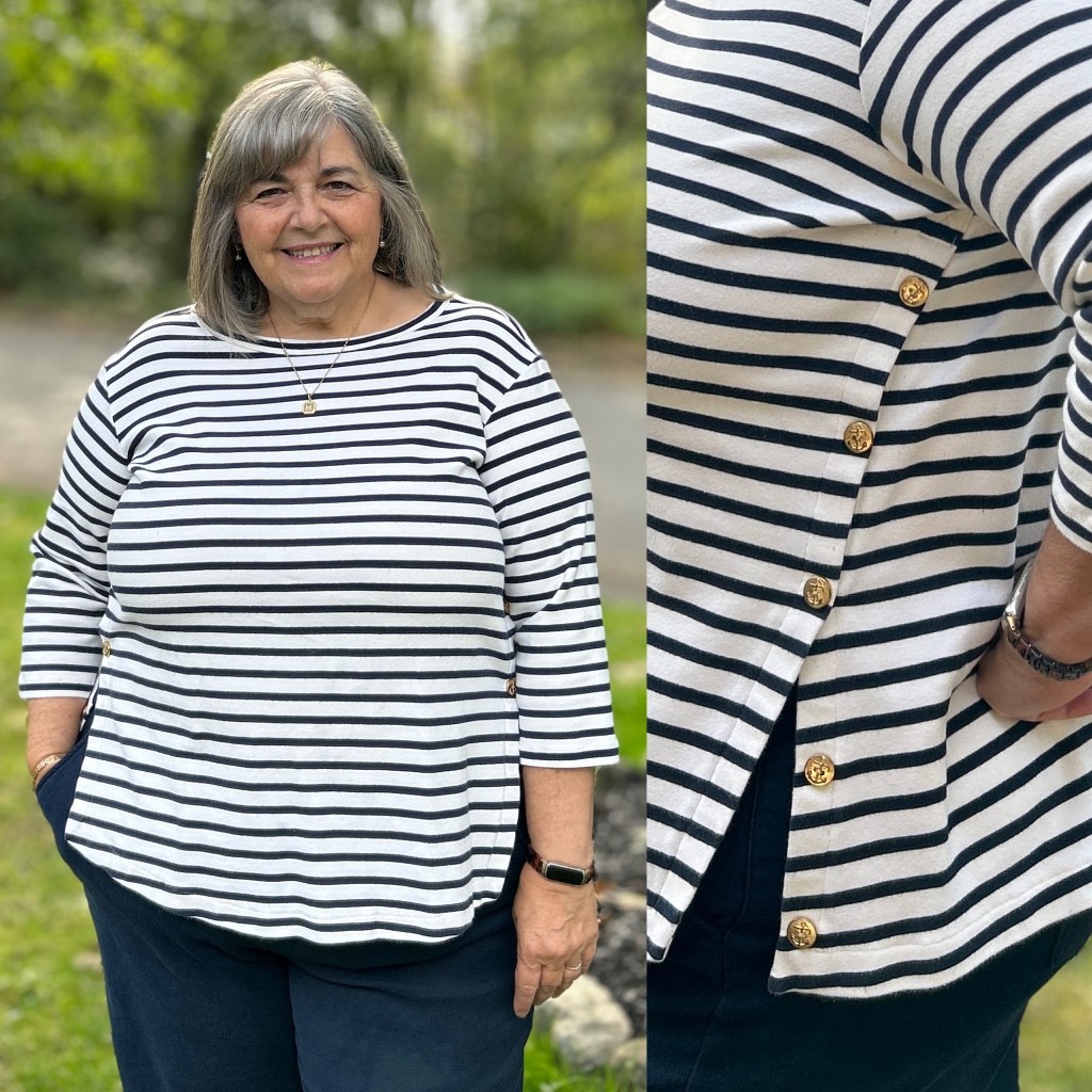 This has to be one of the MOST versatile top pattern offered by Love Notions. It works perfectly for ALL the seasons! I love my sleeveless versions(I need more next summer), wear my short sleeved versions all the time and adore my long sleeved versions as well! This shirt really works year round!