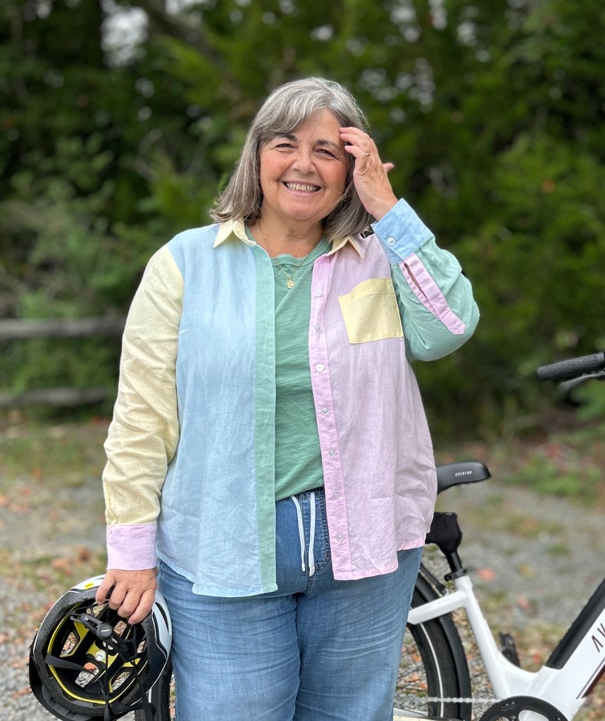 - LN Aria Buttondown color blocked in linen from GrayLines Linen, NYC