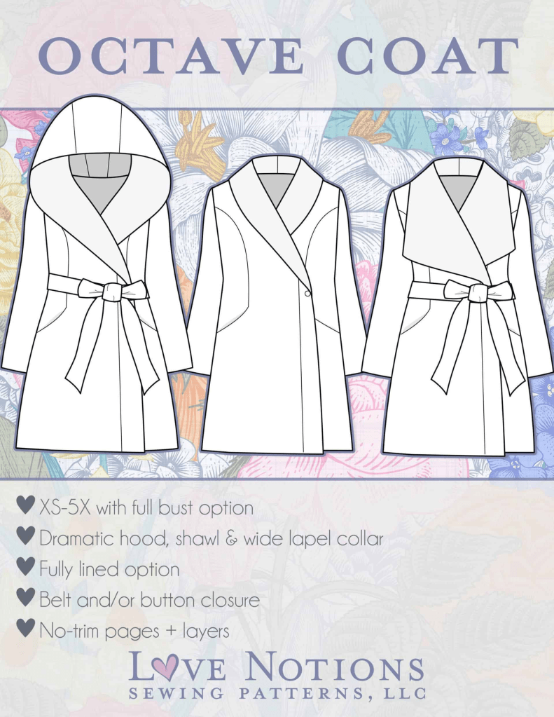 The Octave Coat can be dressed up or down depending on your fabric choice. From a nice classic wool to a thick flannel and even a fleece your choice can give you a completely different look! Be sure to check out the Love Notions Facebook page (type Octave in the search bar) to see all the Octaves made by LN Ambassadors and customers.
