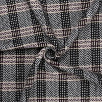 - Black & White Diagonal Plaid Faux Wool Fleece Coating