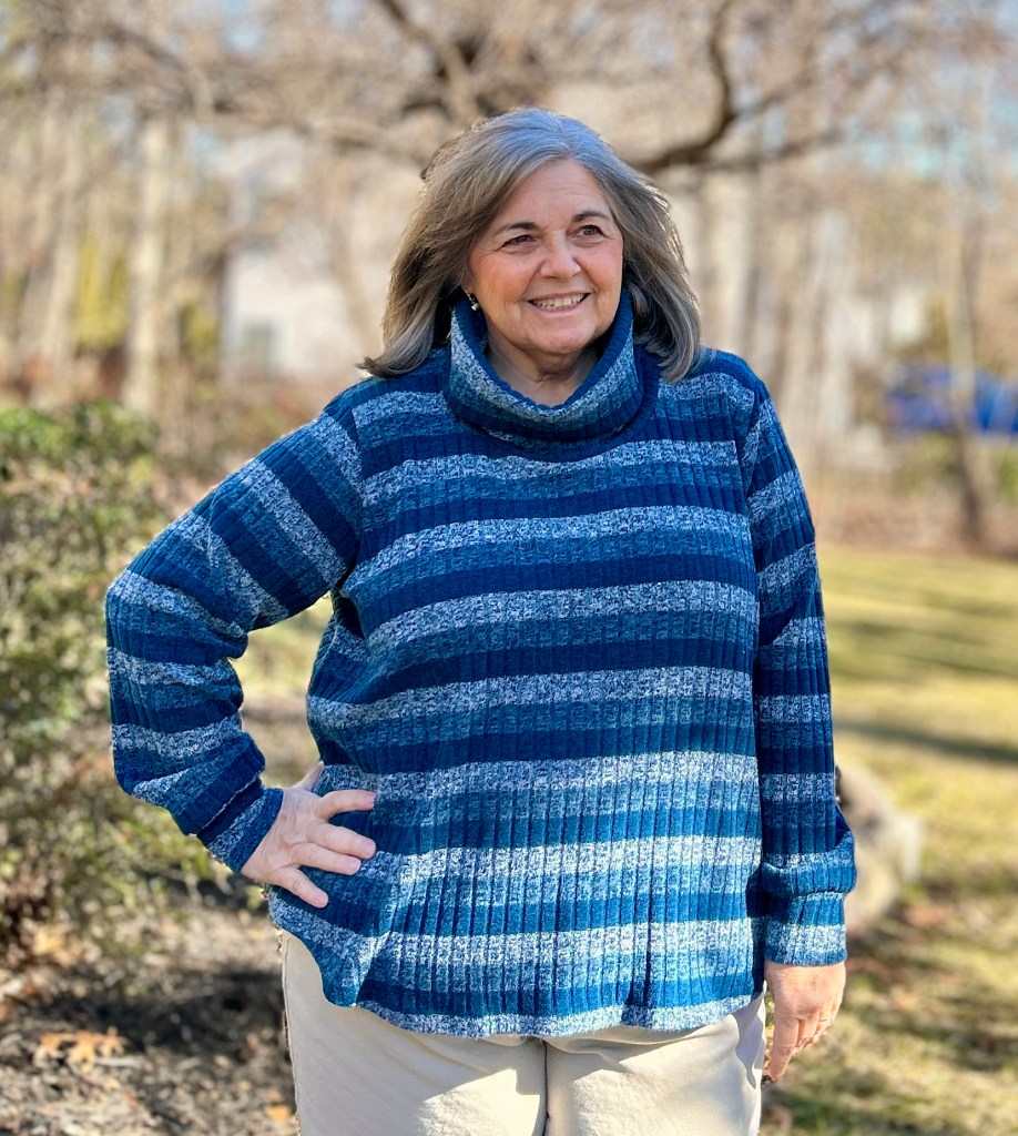 - LN Sloane with a hacked funnel neck in a rib sweater knit from Style Maker Fabrics (Fall 2025)