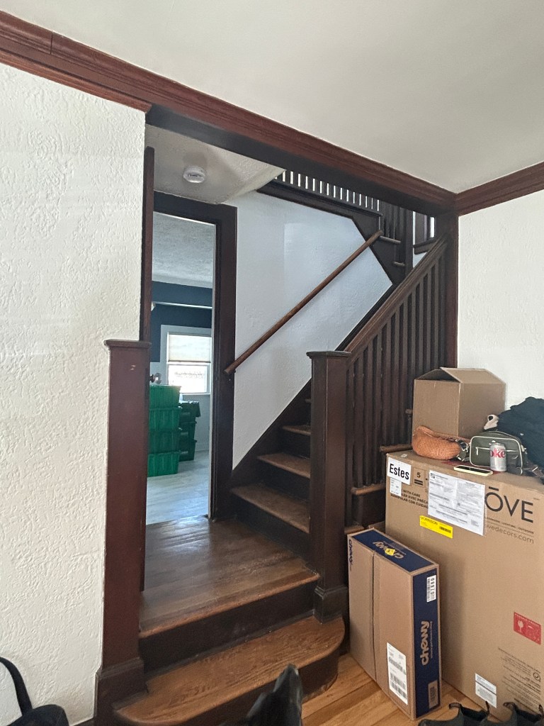 My oldest daughter and her husband finally said goodbye to city living this week as she moved from NYC into a 100 year old house (in a NYC suburb) that they purchased in December. I’ve spent some time helping as needed (mostly babysitting the puppy to keep her out of the way!). Sewing has taken a back seat to endless conversations about paint colors and whatnot. When people ask her if she is renovating, she politely responds, “NO, we are restoring”. I am just in love with all the red oak crown moulding, picture rails and plastered walls!