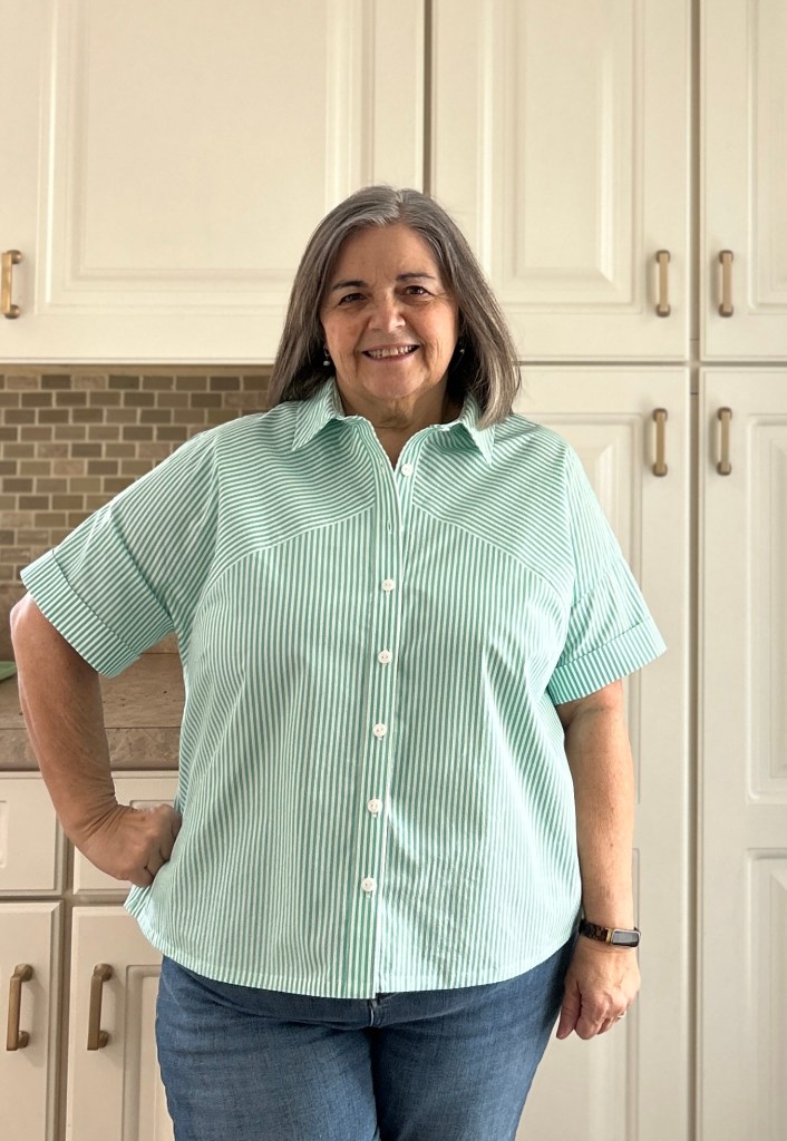 I was honored to test the new Rivi Blouse and Dress pattern from Chalk & Notch! I highly recommend this pattern. Gabriela really listens to her testers and any issues that may arise and does whatever is needed to correct the issue or to provide additional instruction when needed. This is an elevated pattern designed for woven fabrics with details that definitely set it above the rest. It was designed with striped fabrics in mind, but is beautiful in any fabric.