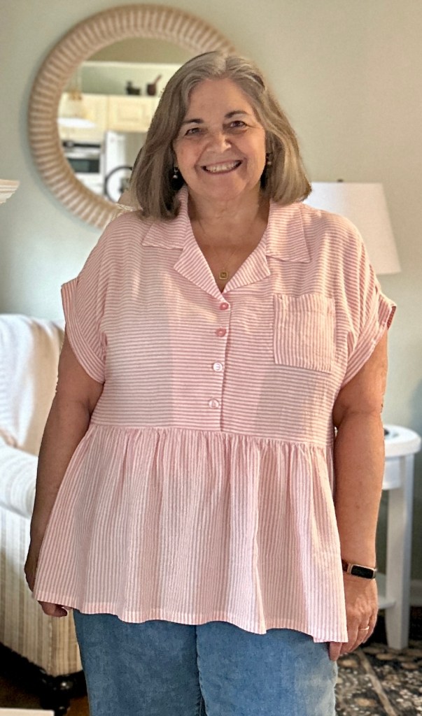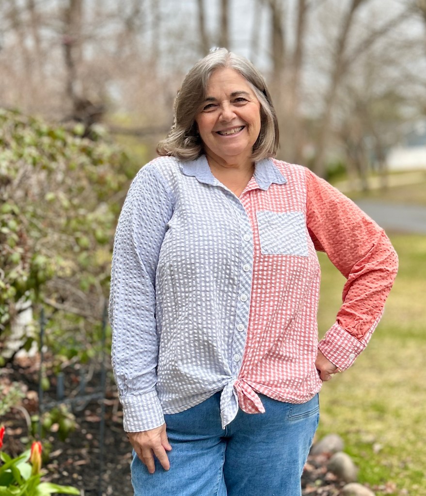 • LN Aria Button Down ~ color blocked in cotton seersucker. (one of the very first Arias I made!)
