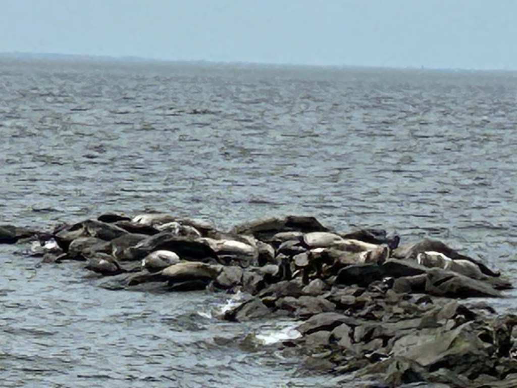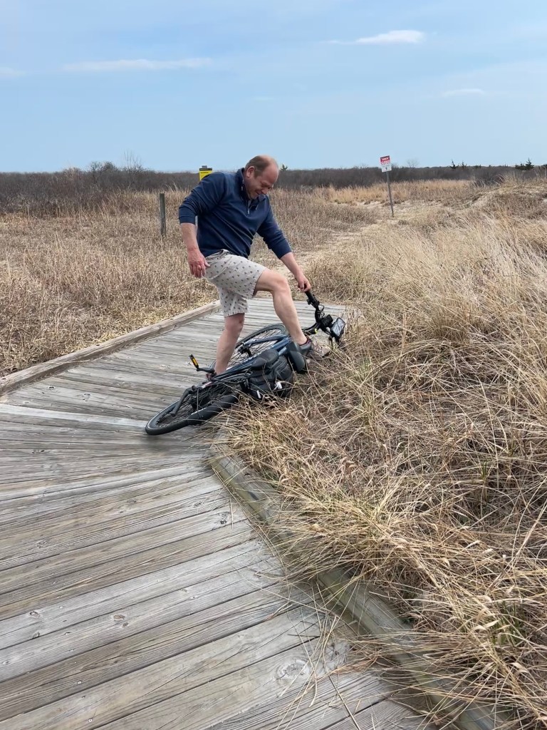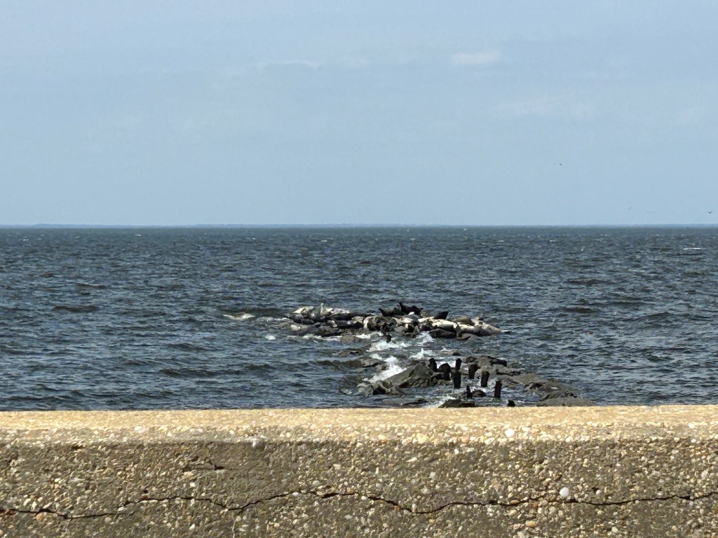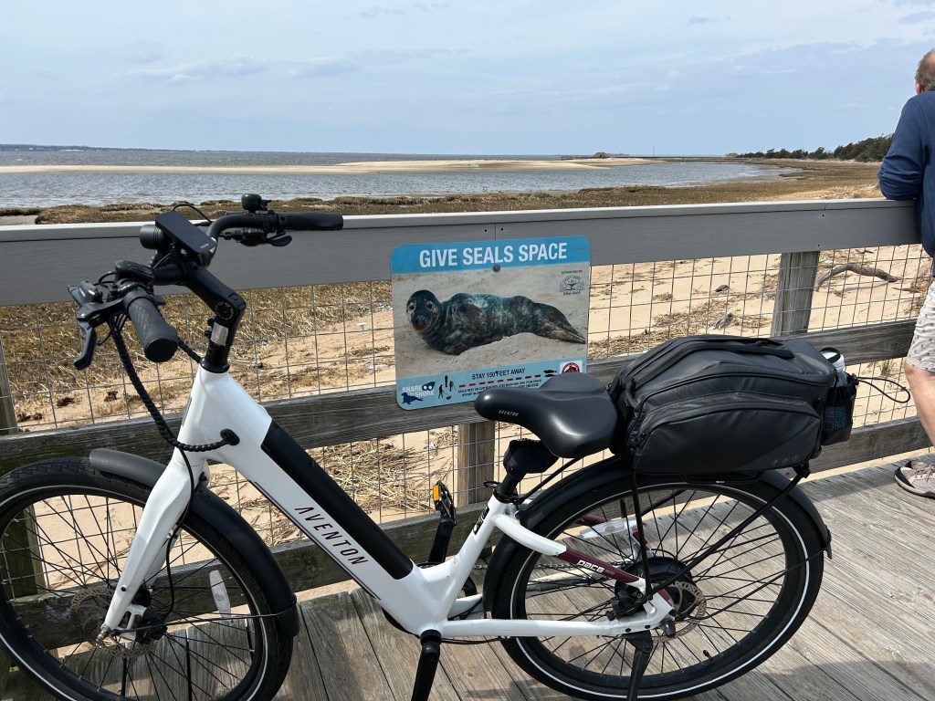 We had an 80* day on Wednesday (not normal for us at this time of year!), so we headed over to one of our favorite trails at Sandy Hook to check on the seals before they headed north. It is truly one of my favorite places to ride, although it does get too hot on this trail in the summer since there isn’t a ton of shade. Sandy Hook has a little bit of everything~ the ocean, views of NYC, a historic lighthouse (250 years old), an amazing paved bike trail that winds through Fort Hancock (a historic army fort built in 1857). And within the old Fort grounds is an amazing tavern that was once the barn for the mules~ hence the name The Mule Barn Tavern.