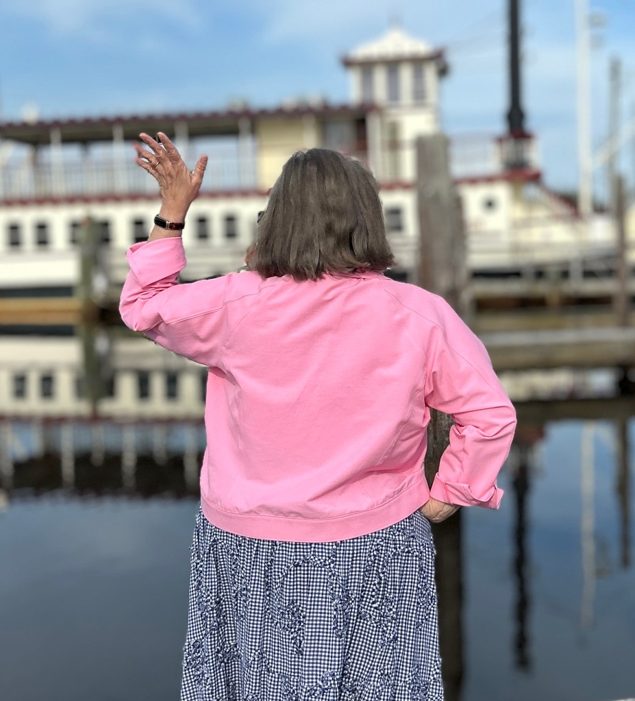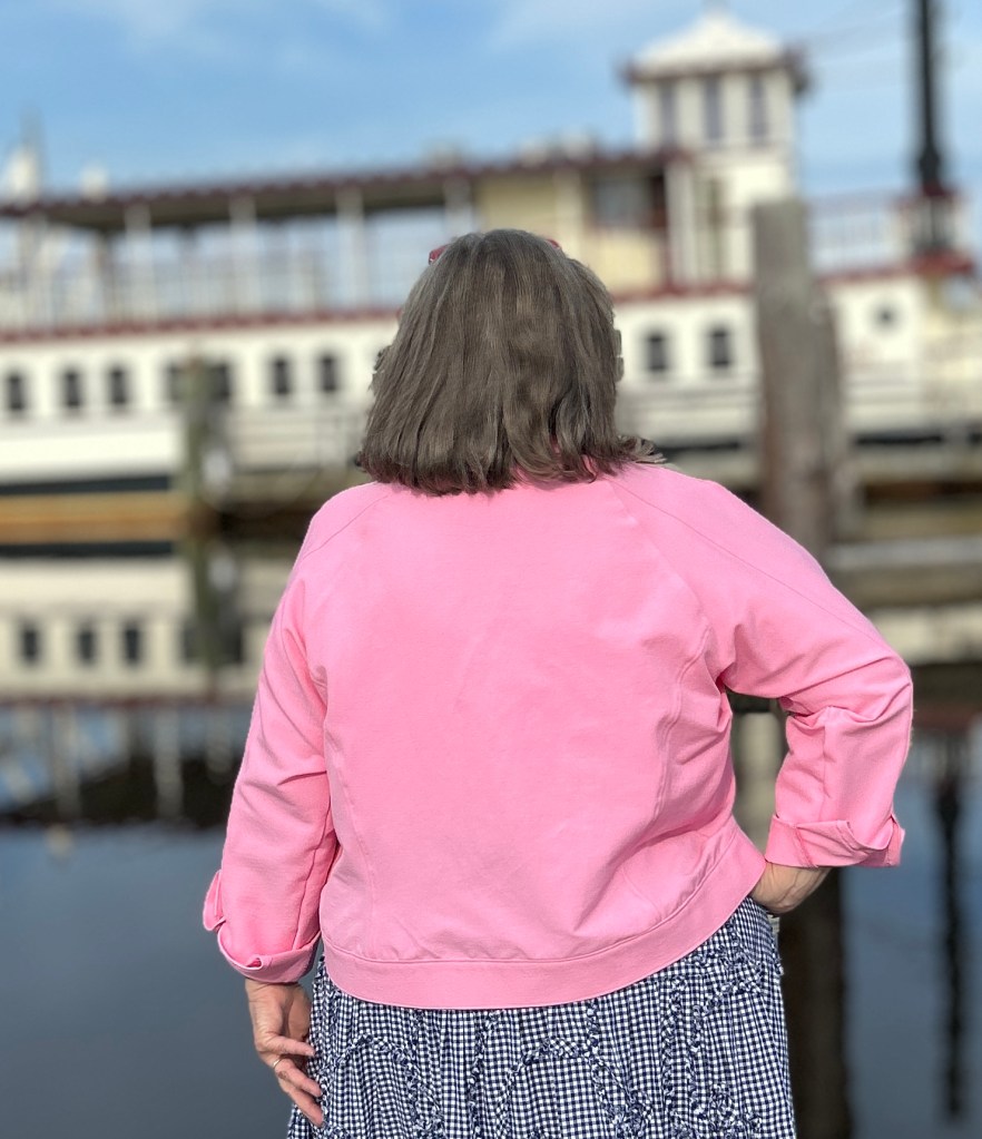 For my Pink Interlude, I made an XL with the Full Bust Option and graded out to the 2X below the waist line area. I have a very rounded high hip so I wanted to make sure I had enough room there.
