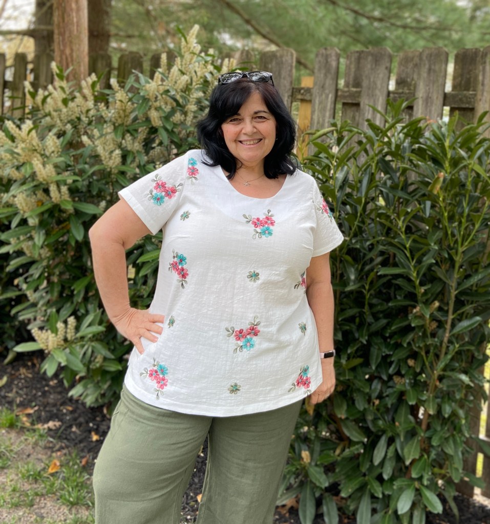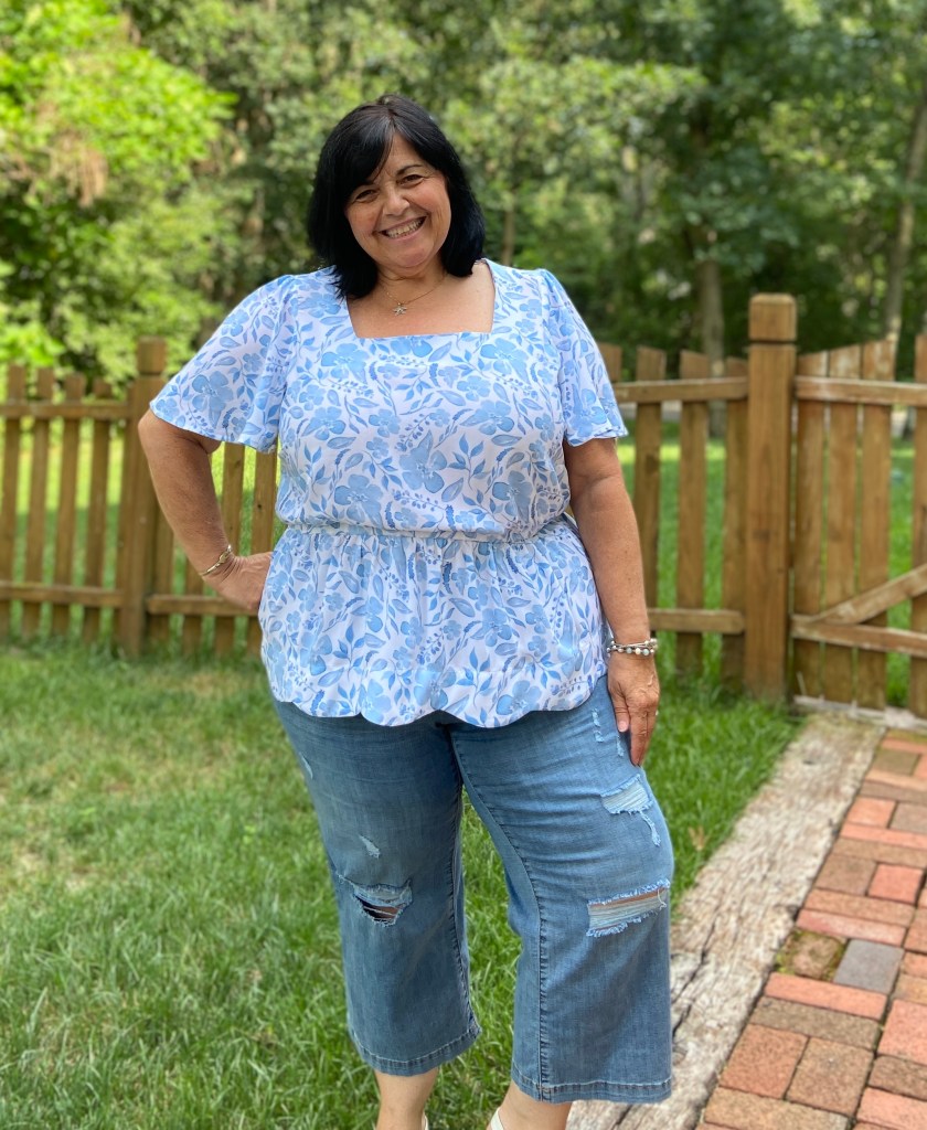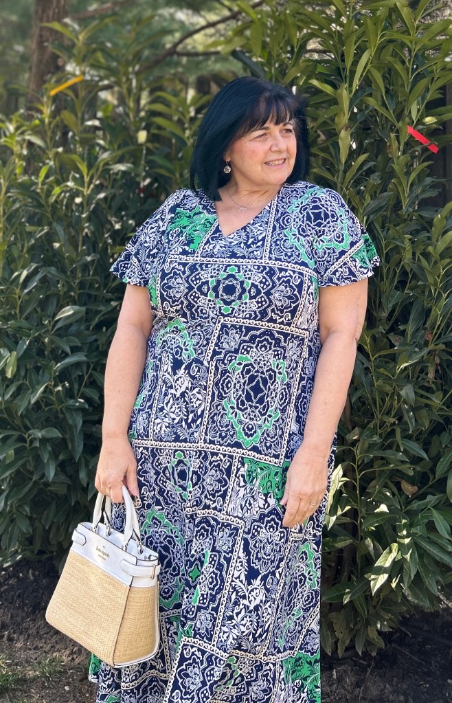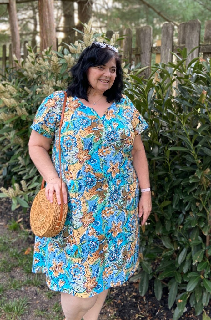 For my Palmer Dress I sewed up and XL with the FBA and graded to a 2X for the waist and hips. This is exactly where my body measurements fall on the chart. It truly is important to go by your high bust measurement, as this insured that I got a nice fit at the neckline and shoulders. I sewed up the flutter sleeve with the narrow waistband and midi skirt.