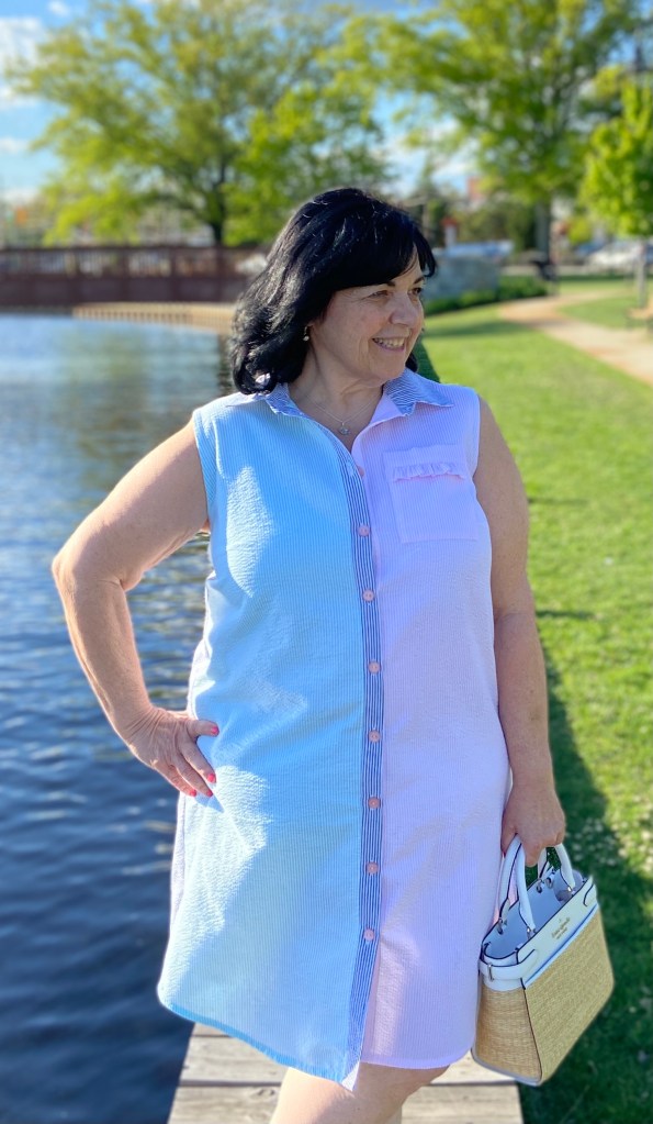 Seersucker is cool and crisp, making it the perfect fabric to wear on hot humid summer days! Seersucker’s stripes are raised, which offers air circulation between the fabric and your skin thus keeping you cooler. Did you know the term “seersucker”comes from the Hindi word “sirsakar” that was borrowed from the Persian compound “shiroshakar” meaning “milk and sugar”. If you want to read the complete history of Seersucker and why it became so popular in the US- head over to this blog post from Country Club Prep. Click here.